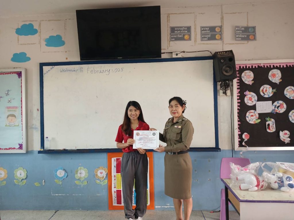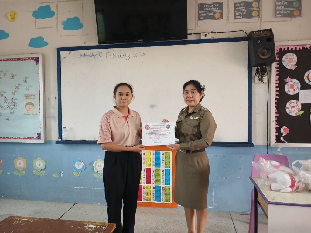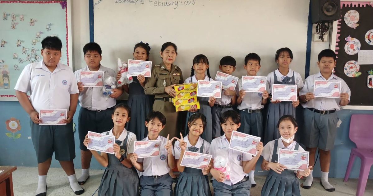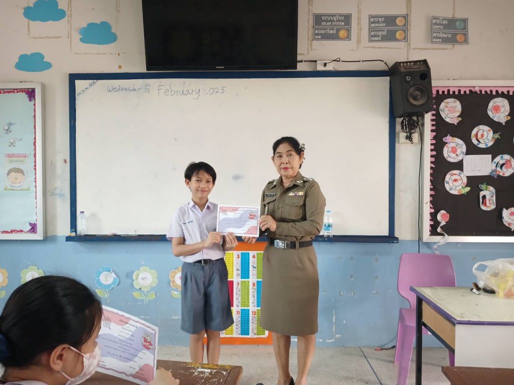ครูตำรวจแดร์ 26 กุมภาพันธ์ 2568 โดย admin / การปฏิบัติหน้าที่ของตำรวจ,การปฏิบัติหน้าที่ของตำรวจ,งานป้องกันปราบปราม เมื่อวันที่ 26 กุมภาพันธ์ 2568 เวลา 08.30 – 09.30 น. พ.ต.อ.ธีรวุฒิ วงศาอ้วนผกก.สภ.กมลาไสย ได้มอบหมายให้ ร.ต.อ.หญิง วลัยพรรณ จำปาสี รอง สว.ธร.สภ.กมลาไสย ให้เข้าทำการสอนโครงการครูตำรวจแดร์ ณ โรงเรียน บานเย็นวิทยา ทำการสอน ป.5 ต.กมลาไสย อ.กมลาไสย จว.กาฬสินธุ์ เรียบร้อยเหตุการณ์ปกติ FacebookFacebookXXLINELine