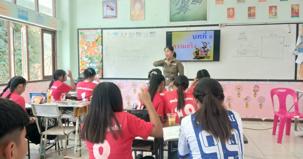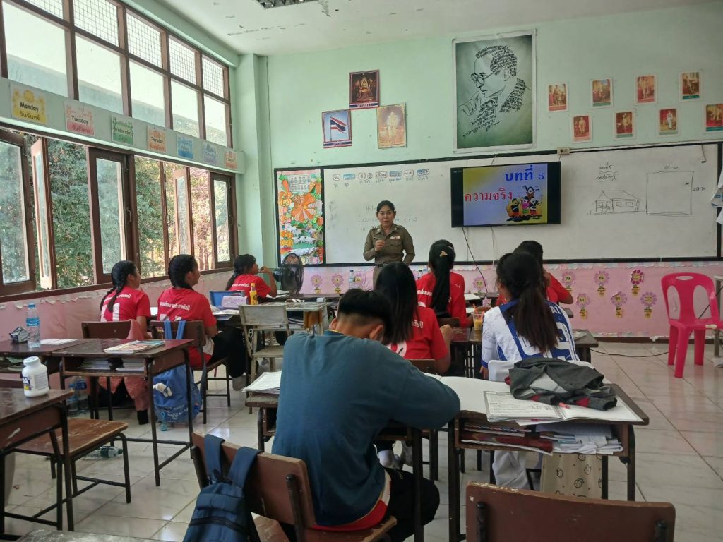 ครูตำรวจแดร์ 27 กุมภาพันธ์ 2568 โดย admin / การปฏิบัติหน้าที่ของตำรวจ,การปฏิบัติหน้าที่ของตำรวจ,งานป้องกันปราบปราม วันที่ 27 กุมภาพันธ์ 2568 เวลา 13.30 – 14.30 น. พ.ต.อ.ธีรวุฒิ วงศาอ้วน ผกก.สภ.กมลาไสย มอบหมายให้ ร.ต.อ.หญิง วลัยพรรณ จำปาสี รอง สว.ธร.สภ.กมลาไสย ให้เข้าทำการสอน โรงเรียนชุมชนโพนงาม ประชา ประสานศิลป์ ต.โพนงาม อ.กมลาไสย จว.กาฬสินธุ์ โดยทำการสอน ป. 6 จำนวน 29 คน เรียบร้อยเหตุการณ์ปกติ FacebookFacebookXXLINELine