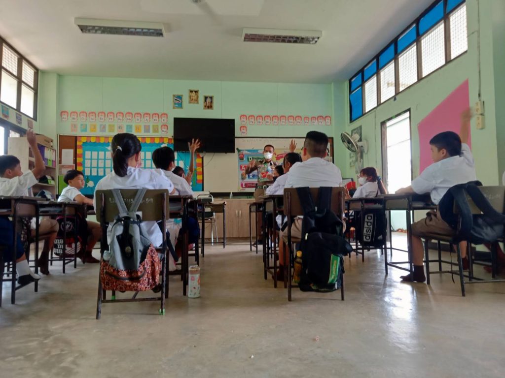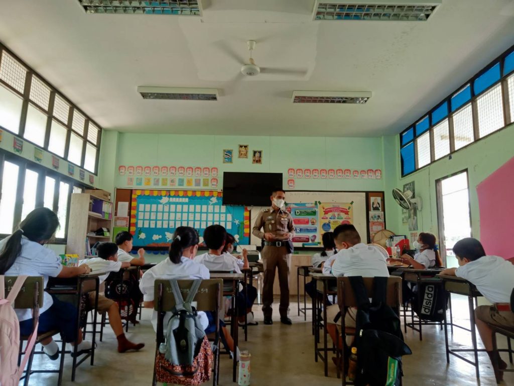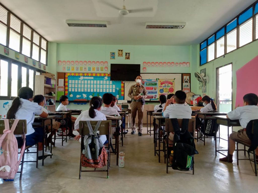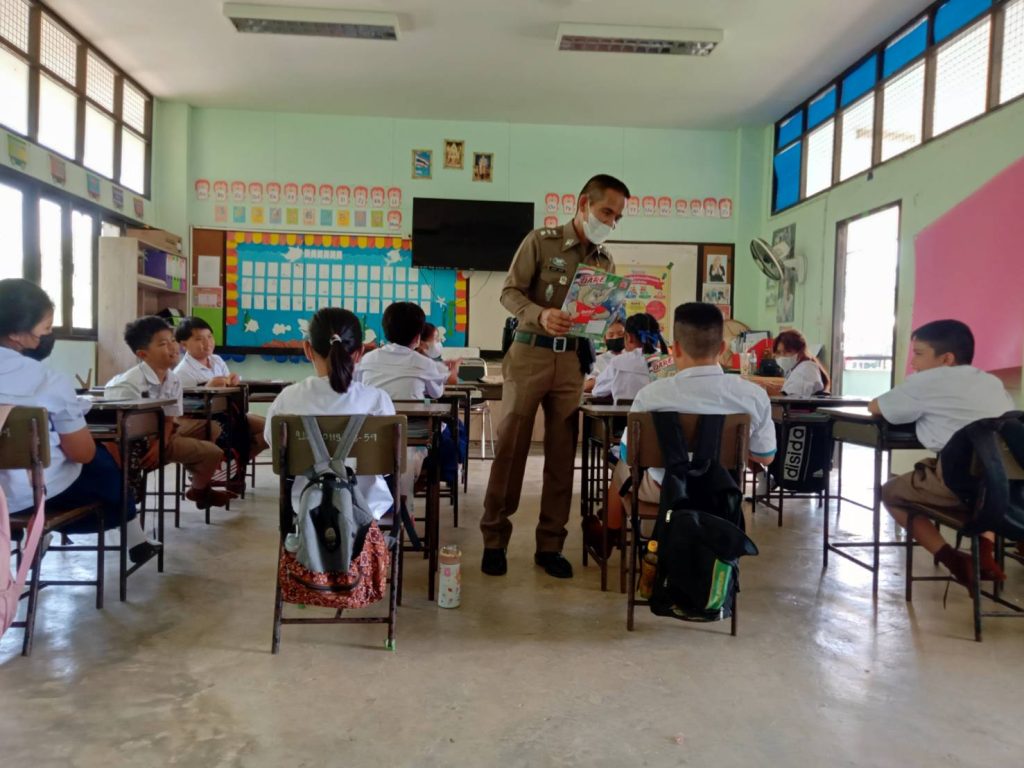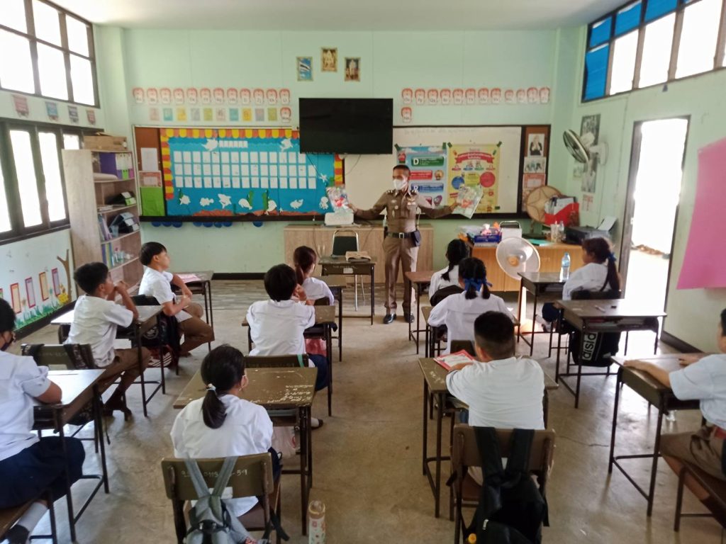 วันที่ 18 พฤษภาคม 2566 เวลา 13.30 น. โดยการอำนวยการของ พ.ต.อ.ธีรวุฒิ วงศาอ้วน ผกก.สภ.กมลาไสย พ.ต.ท.นครินทร์ ศรีอัครวิเนต รอง.ผกก.ป.ฯ ควบคุมการปฏิบัติโดย พ.ต.ท.มงคล เจียงภูเขียว สวป.ฯ มอบหมายให้ ร.ต.อ.เทอดชัย ดอนไพร รอง สวป.ฯ (ครูตำรวจแดร์) ออกปฏิบัติหน้าที่ สอนนักเรียนตามโครงการการศึกษาเพื่อต่อต้านสารเสพติดในเด็กนักเรียน ประจำภาคเรียนที่1 ปีการศึกษา 2566 นักเรียนชั้นป.5 ร.ร.บ้านลาดวิทยาเสริม ต.หลักเมือง อ.กมลาไสย จ.กาฬสินธุ์
