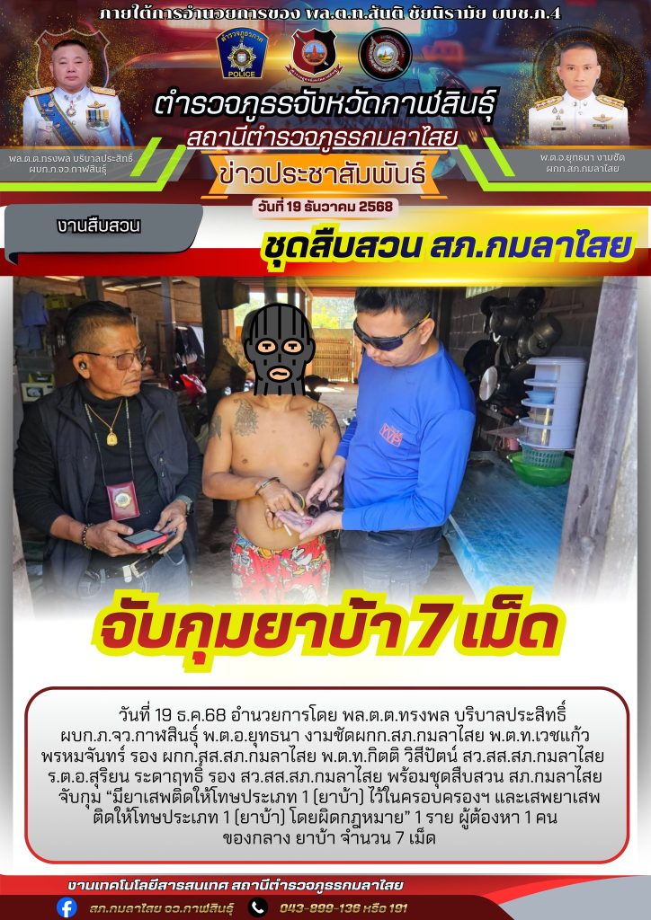 จับกุมยาบ้า 7 เม็ด 19 ธันวาคม 2568 โดย kasai policeman / การปฏิบัติหน้าที่ของตำรวจ,การปฏิบัติหน้าที่ของตำรวจ,งานสืบสวน FacebookFacebookXXLINELine