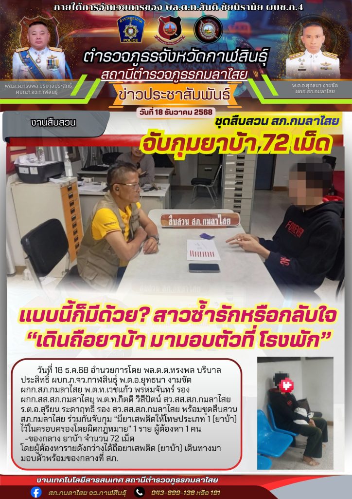 จับกุมยาบ้า 72 เม็ด 18 ธันวาคม 2568 โดย kasai policeman / การปฏิบัติหน้าที่ของตำรวจ,การปฏิบัติหน้าที่ของตำรวจ,งานสืบสวน FacebookFacebookXXLINELine