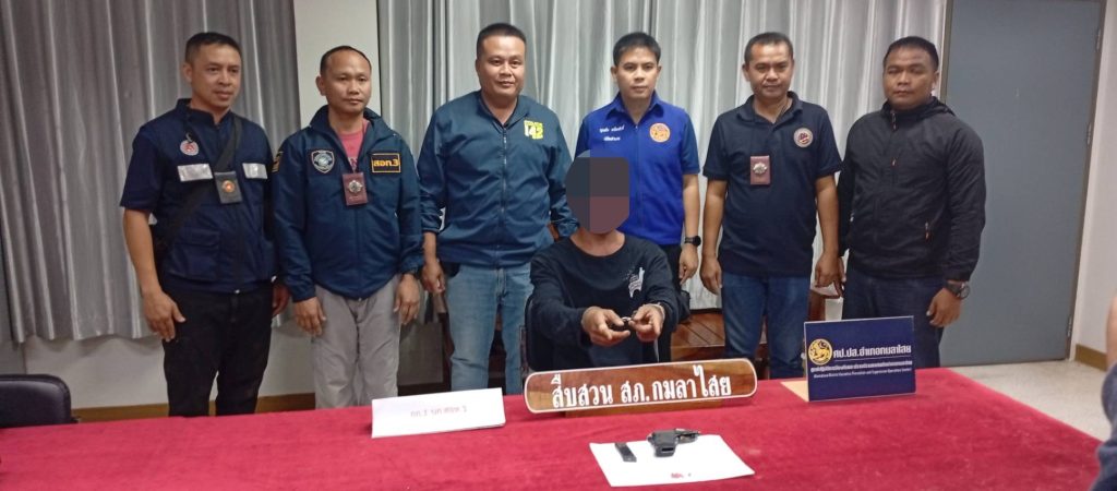งานสืบสวน สภ.กมลาไสย รายงานผลการปฏิบัติ/จับกุม ประจำวันที่ 4 พ.ย.68 โดยการอำนวยการของ พล.ต.ต.ทรงพล บริบาลประสิทธิ์ ผบก.ก.จว.กาฬสินธุ์ พ.ต.อ.ขจรฤทธิ์ วงษ์ราช รอง ผบก.ฯ รรท.ผกก.สภ.กมลาไสย, พ.ต.ท.ถาวร ยอดยรรยง รอง ผกก.สส.สภ.กมลาไสย และ พ.ต.ท.วีระชาติ คำเพราะ สว.สส.สภ.กมลาไสย ร.ต.อ.เข็มชาติ กาอาจ รอง สวป.(ชส) สภ.กมลาไสย พร้อมชุดสืบสวน สภ.กมลาไสย ร่วมกับ กก.1 บก.สอท.3 – จับกุม “จำหน่ายยาเสพติดให้โทษประเภท 1 (ยาบ้า)ฯ เสพยาเสพติดให้โทษประเภท 1 (ยาบ้า) โดยผิดกฎหมาย และมีอาวุธปืนไว้ในครอบครองโดยไม่ได้รับอนุญาตจากนายทะเบียน” 1 ราย ผู้ต้องหา 1 คน –ของกลาง ยาบ้า จำนวน 13 เม็ด, อาวุธปืนพกสั้นกึ่งอัตโนมัติขนาด .22 จำนวน 1 กระบอก