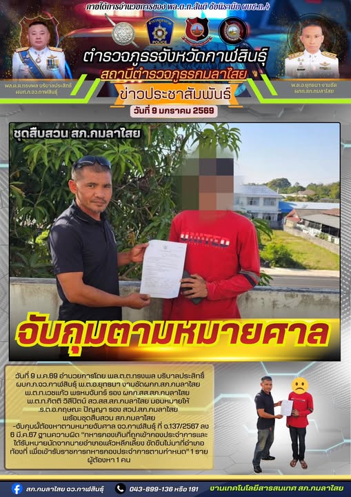 จับตามหมายศาล 9 มกราคม 2569 โดย kasai policeman / การปฏิบัติหน้าที่ของตำรวจ,งานสืบสวน FacebookFacebookXXLINELine