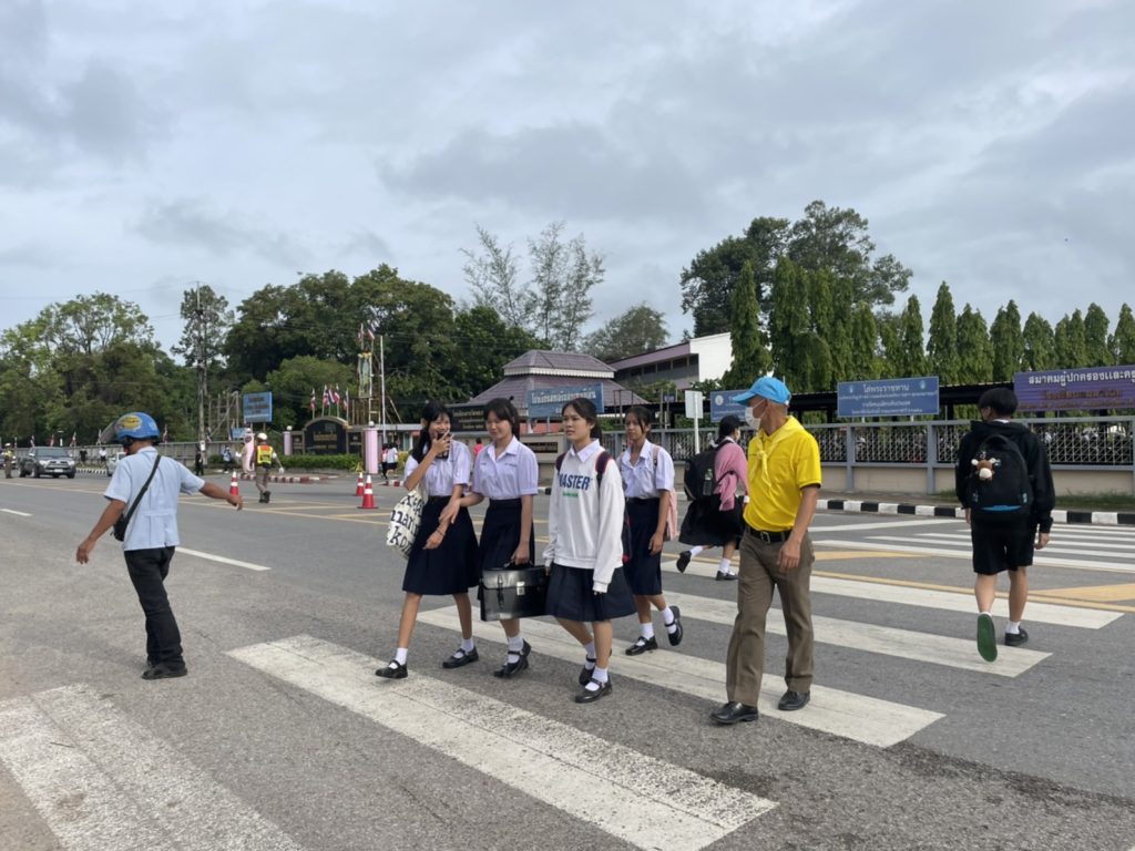 วันที่ 29 พฤษภาคม 2566 เวลา 07.30 น. พ.ต.อ.ธีรวุฒิ วงศาอ้วน ผกก.สภ.กมลาไสย มอบหมายให้ ร.ต.อ.หญิง วลัยพรรณ จำปาสี รอง สว.ธร.ฯ พร้อมด้วย ข้าราชการตำรวจ จิตอาสาฯ สภ.กมลาไสย ปฏิบัติหน้าที่จิตอาสาฯ อำนวยความสะดวกการจราจร ช่วยเด็กนักเรียนข้ามทางม้าลาย “ตำรวจจิตอาสาฯ พาน้องข้ามถนนเพื่อเพิ่มความปลอดภัยแก่นักเรียน” ณ โรงเรียนกมลาไสย และ โรงเรียนพิพัฒน์ราษฎร์บํารุง ต.กมลาไสย อ.กมลาไสย จ.กาฬสินธุ์