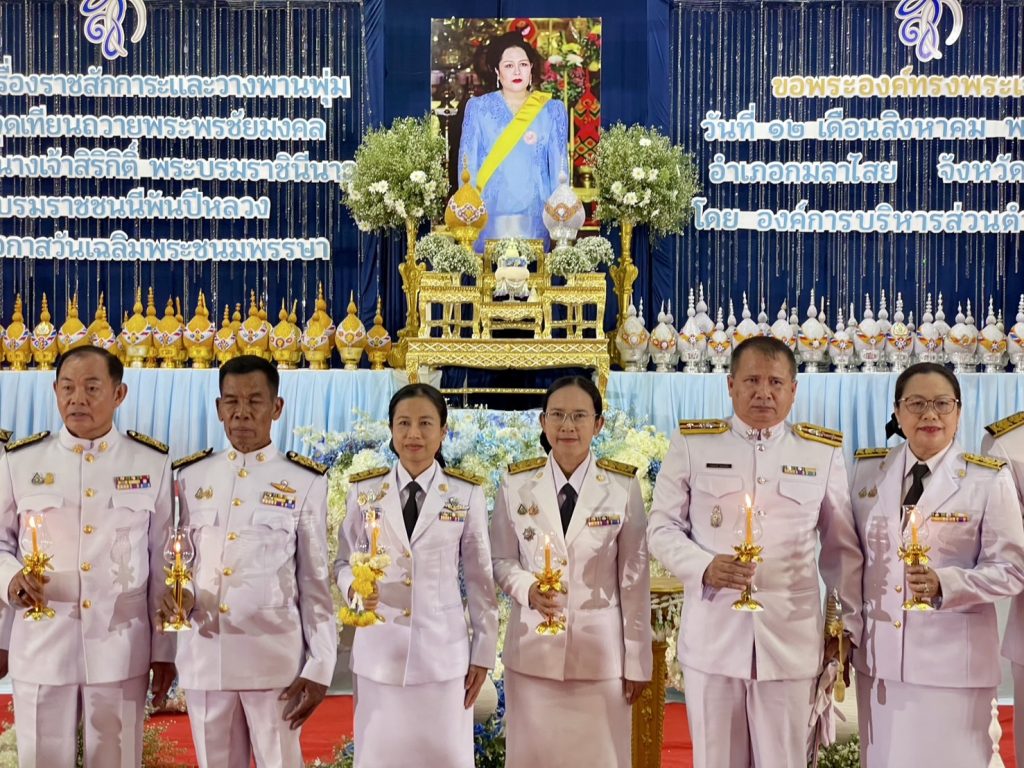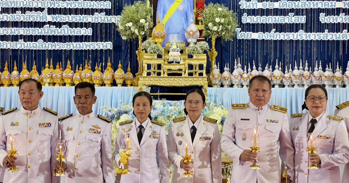 วันที่ 12 ส.ค.2568 เวลา 17.30 น. พ.ต.อ.ธีรวุฒิ วงศาอ้วน ผกก.สภ.กมลาไสย มอบหมายให้ พ.ต.ท.ประพนธ์ ภูจอมนิล รอง ผกก.(สอบสวน)ฯ รรท.ผกก.สภ.กมลาไสย พ.ต.ท.อภิสิทธิ์ พลเตชะ สว.(สอบสวน)ฯ พร้อมข้าราชการตำรวจสภ.กมลาไสย ร่วมพิธีถวายเครื่องราชสักการะและวางพานพุ่ม และพิธีจุดเทียนชัยถวายพระพรชัยมงคล สมเด็จพระนางเจ้าสิริกิติ์ พระบรมราชินีนาถ พระบรมราชชนนีพันปีหลวง เนื่องในโอกาสวันเฉลิมพระชนมพรรษา ๑๒ สิงหาคม ๒๕๖๘ โดยมี นางสาวแววตา นระทัด นายอำเภอกมลาไสย เป็นประธานในพิธีฯ พร้อมหัวหน้าส่วนราชการ ข้าราชการทุกภาคส่วนฯ กลุ่มฯ ชมรมฯประชาชน ร่วมในพิธีฯ ณ หอประชุมโรงเรียนพิพัฒน์ราษฎร์บำรุง ตำบลกมลาไสย อำเภอกมลาไสย จังหวัดกาฬสินธุ์