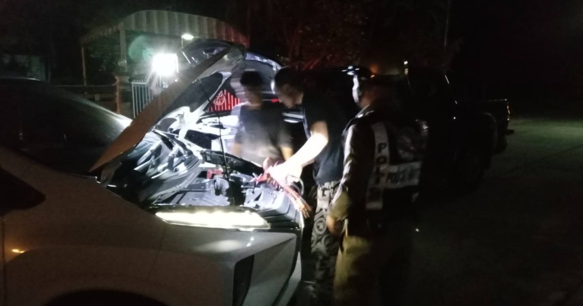เมื่อวันที่ 19 พฤษภาคม 2567 เวลา 21.30 น. เจ้าหน้าที่สายตรวจรถจักรยานยนต์ “ฟ้าแดด 18” ได้ออกตรวจตามแผนการตรวจภายในเขตพื้นที่รับผิดชอบ เมื่อออกตรวจมาถึงบริเวณถนนสาธารณะหน้าบ้านอดีตนายอำเภอกมลาไสย ( นายอำเภอแพน ) หมู่ 1 ต.หลักเมือง อ.กมลาไสย จว.กาฬสินธุ์ ได้พบรถยนต์ปิคอัพแคป พร้อมเจ้าของรถยนต์ พยายามทำการสตาร์ทรถอยู่ไม่ติดเครื่องยนต์ ได้สอบถามปรากฎว่าแบตเตอรี่กำลังไฟอ่อน สตาร์ทไม่ติด จึงได้เข้าช่วยเหลือประชาชน ประสานนำรถยนต์อีกคันพร้อมสายพ่วง ชาร์ตสตาร์ทรถยนต์ เครื่องยนต์เดินเครื่องยนต์ได้ สามารถขับขี่รถยนต์กลับบ้านได้