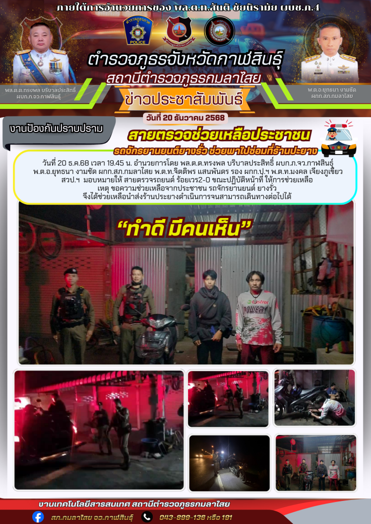 ช่วยเหลือประชาชนรถยางรั่ว 20 ธันวาคม 2568 โดย kasai policeman / การปฏิบัติหน้าที่ของตำรวจ,งานป้องกันปราบปราม FacebookFacebookXXLINELine