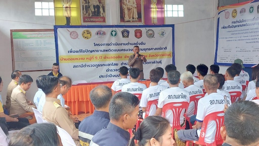 ร.ต.อ.เทอดชัย ดอนไพรรอง.สวป.สภ.กมลาไสย พร้อมชุดสืบ ชุดปฏิบัติการตำบลยั่งยืนฯ สภ.กมลาไสย ร่วมกับหัวหน้าส่วน เจ้าหน้าที่ รพ.สต.บ้านสีถาน ผญบ. ผู้นำ เจ้าหน้าที่ อสม. และประชาชนบ้านดอนหวาย ร่วมต้อนรับคณะตรวจฯ