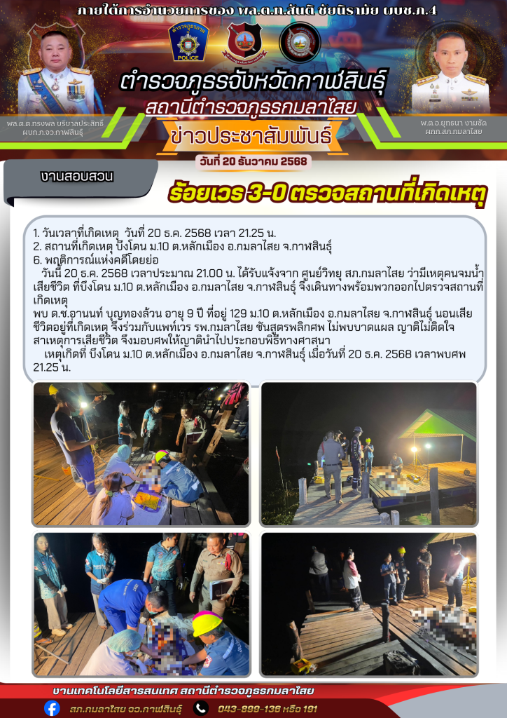 ตรวจสถานที่เกิดเหตุ คนจ่มน้ำ 20 ธันวาคม 2568 โดย kasai policeman / การปฏิบัติหน้าที่ของตำรวจ,งานสอบสวน FacebookFacebookXXLINELine