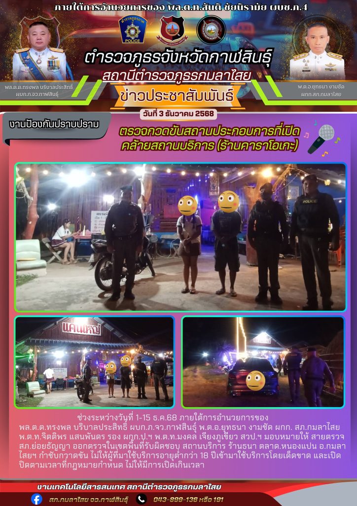 ตรวจสถานบริการฯ 3 ธันวาคม 2568 โดย kasai policeman / การปฏิบัติหน้าที่ของตำรวจ,การปฏิบัติหน้าที่ของตำรวจ,งานป้องกันปราบปราม FacebookFacebookXXLINELine