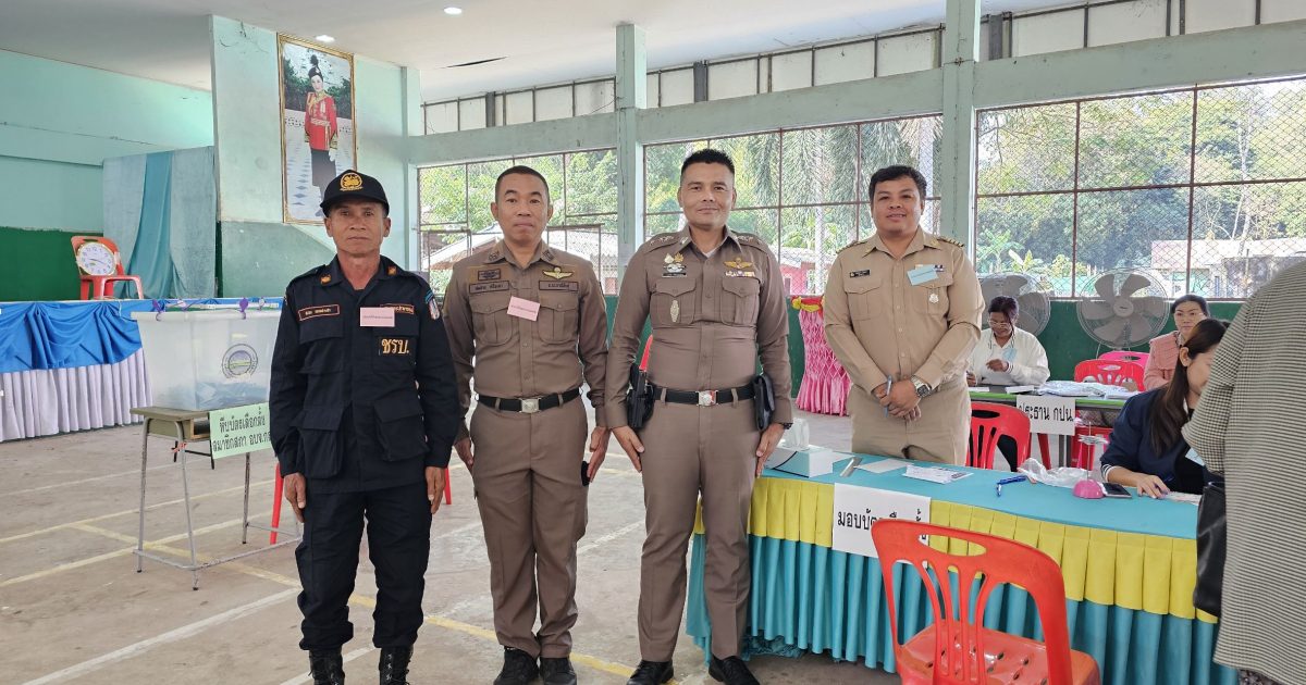 ตรวจหน่วยเลือกตั้ง ส.อบจ. 1 กุมภาพันธ์ 2568 โดย admin / การปฏิบัติหน้าที่ของตำรวจ วันที่ 1 กุมภาพันธ์ 2568 เวลา 09.00 น. พ.ต.อ.ธีรวุฒิ วงศาอ้วน ผกก.สภ.กมลาไสยมอบหมายให้ พ.ต.ท.นครินทร์ ศรีอัครวิเนต รอง ผกก.ป.ฯ พร้อมด้วย พ.ต.ท.มงคล เจียงภูเขียว สวป.ฯ ออกตรวจเยี่ยมหน่วยเลือกตั้งในเขตตำบโคกสมบูรณ์และตำบลธัญญา พบเจ้าหน้าที่อยู่ปฏิบัติหน้าที่ รปภ.ประจำหน่วย รายงานเหตุการณ์ปกติ กำชับปฏิบัติหน้าที่เข้มแข็ง หากมีเหตุขัดข้อง รายงานผู้บังคับบัญาทราบ สถานะการณ์ : เหตุการณ์ทั่วไปปกติ FacebookFacebookXXLINELine