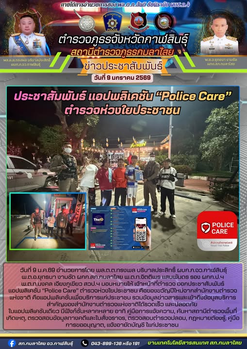 ประชาสัมพันธ์ แอพ POLICE CARE 9 มกราคม 2569 โดย kasai policeman / การปฏิบัติหน้าที่ของตำรวจ,งานป้องกันปราบปราม FacebookFacebookXXLINELine