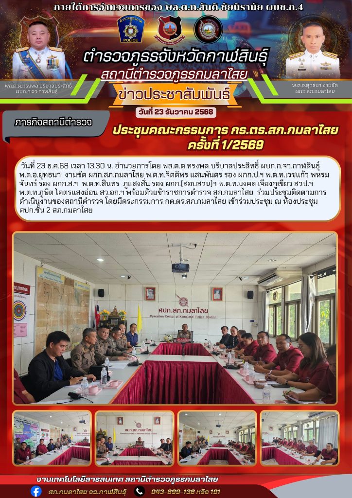 ประชุมคณะกรรมการ กต.ตร.สภ.กมลาไสย 23 ธันวาคม 2568 โดย kasai policeman / ข่าวภารกิจผู้บังคับบัญชา,งาน กต.ตร.สถานีตำรวจ FacebookFacebookXXLINELine