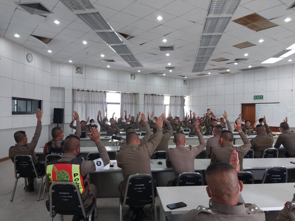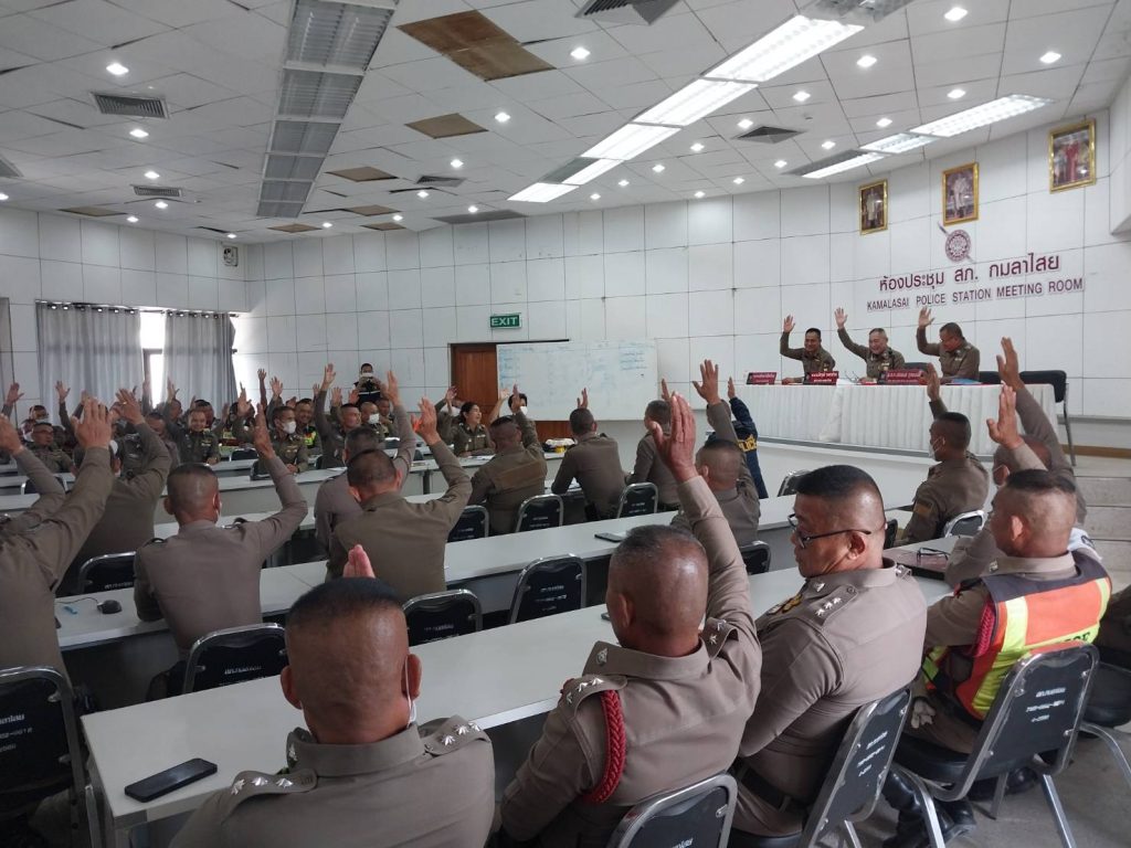 ข้าราชการตำรวจ สภ.กมลาไสย ร่วมกันประชุมประจำเดือน ชี้แจงข้อราชการต่างๆของผู้บังคับบัญชาให้ทราบ และลงคะเเนนคัดเลือกข้าราชการตำรวจดีเด่น ณ ห้องประชุม สภ.กมลาไสย