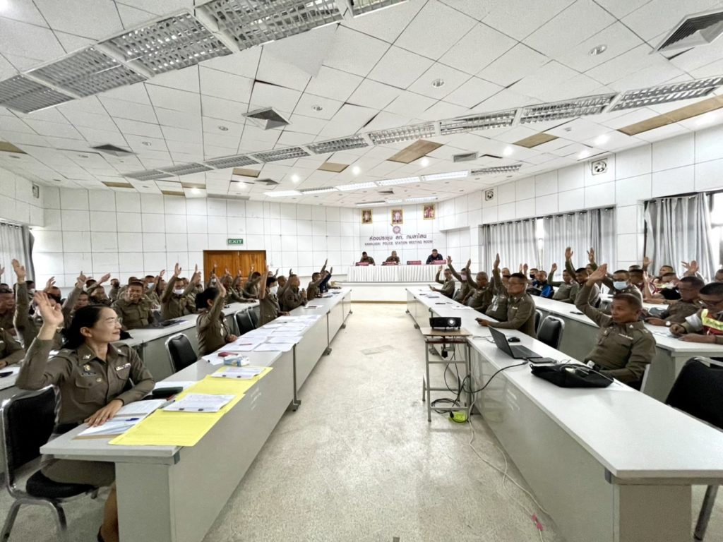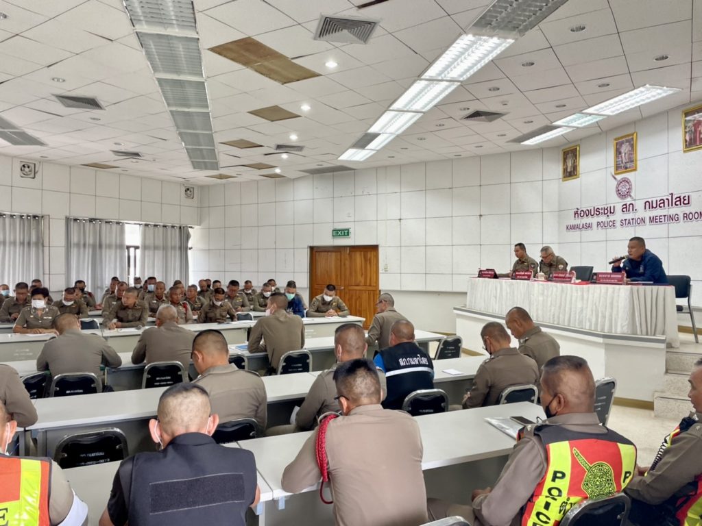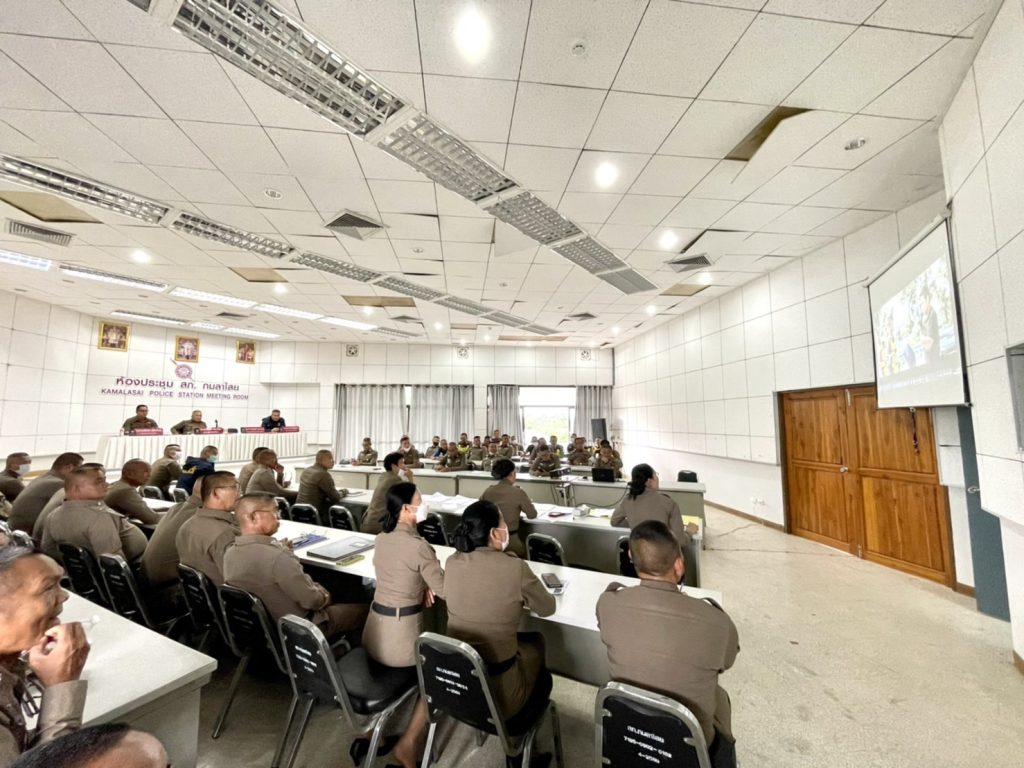เมื่อวันที่ 12 พฤษภาคม 2566 เวลา 13.30 น. พ.ต.อ.ธีรวุฒิ วงศาอ้วน ผกก.สภ.กมลาไสย ได้เรียกประชุมข้าราชการตำรวจในปกครอง เพื่อชี้แจงแจ้งข้อราชการต่างๆ ข้อสั่งการของผู้บังคับบัญชาหน่วยเหนือ ในการปฏิบัติหน้าที่ราชการ เน้นการปฏิบัติหน้าที่ด้วยความซื่อสัตย์สุจริต และการไม่เข้าไปยุ่งเกี่ยวข้องกับยาเสพติด อบายมุขทุกประเภท ไม่ว่าจะทางตรงหรือทางอ้อมใดๆ และในวันที่ 14 พฤษภาคม 2566 ที่จะถึงนี้ จะมีการเลือกตั้งสมาชิกสภาผู้แทนราษฎรเป็นการทั่วไป ขอให้ข้าราชการตำรวจวางตัวเป็นกลาง ผู้ที่ปฏิบัติหน้าที่ประจำหน่วยเลือกตั้ง ขอให้ปฏิบัติหน้าที่ด้วยความเข้มแข็ง อย่างให้เกิดข้อบกพร่องขึ้นได้ และหากพบเห็นการกระทำความผิดหรือพฤติการณ์ที่สุ่มเสี่ยงต่อการกระทำความผิด ให้ประสานประธานกรรมการการเลือกตั้งประจำหน่วยเลือกตั้งในการดำเนินการและให้รายงานให้ผู้บังคับบัญชาทราบทันที และได้มีการพิจารณาคัดเลือกข้าราชการตำรวจชั้นประทวน เพื่อแต่งตั้งเป็นคณะกรรมการตรวจสอบและติดตามการบริหารงานตำรวจ สภ.กมลาไสย ชุดต่อไป โดยมี พ.ต.ท.นครินทร์ ศรีอัครวิเนต รอง ผกก.ป.สภ.กมลาไสย , พ.ต.ท.ถาวร ยอดยรรยง รอง ผกก.สส.สภ.กมลาไสย , พ.ต.ท.มงคล เจียงภูเขียว สวป.สภ.กมลาไสย , พ.ต.ท.ภูษิต โคตรแสงอ่อน สว.อก.สภ.กมลาไสย ทำหน้าที่เลขานุการการประชุม และข้าราชการตำรวจ สภ.กมลาไสย เข้าร่วมประชุมอย่างพร้อมเพรียงกัน ณ ห้องประชุม สภ.กมลาไสย ชั้น 4