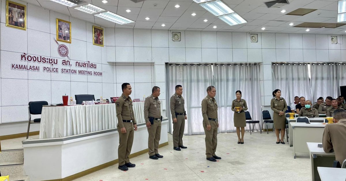 ประชุมประจำเดือน/พิธีประดับยศ 16 พฤศจิกายน 2566 โดย admin / การปฏิบัติหน้าที่ของตำรวจ,ข่าวภารกิจผู้บังคับบัญชา,ประชาสัมพันธ์กิจกรรมของหน่วย วันที่ 15 พฤศจิกายน 2566 เวลา 13.30 น. พ.ต.อ.ธีรวุฒิ วงศาอ้วน ผกก.สภ.กมลาไสย พ.ต.ท.ประพนธ์ ภูจอมนิล รอง ผกก.(สอบสวน) สภ.กมลาไสย พ.ต.ท.นครินทร์ ศรีอัครวิเนต รอง ผกก.ป.สภ.กมลาไสย พ.ต.ท.ถาวร ยอดยรรยง รอง ผกก.สส.สภ.กมลาไสย พ.ต.ท.มงคล เจียงภูเขียว สวป.สภ.กมลาไสย พ.ต.ท.ภูษิต โคตรแสงอ่อน สว.อก.สภ.กมลาไสย พ.ต.ต.อมร เดชศรี สว.สส.สภ.กมลาไสย และข้าราชการตำรวจ สภ.กมลาไสย ร่วมประชุมประจำเดือน ชี้แจงข้อราชการต่าง ๆ ของผู้บังคับบัญชา ให้กำลังพลทุกนายทราบ กำชับการปฏิบัติหน้าที่ และหัวหน้างานป้องกันปราบปราม งานจราจร งานสอบสวน งานสืบสวน งานอำนวยการ สรุปผลการปฏิบัติงานประจำเดือนให้ผู้บังคับบัญชาทราบ พร้อมร่วมพิธี ประดับยศให้กับข้าราชที่ได้รับการเลื่อนยศให้สูงขึ้น ทั้งหมด 15 นาย ณ ห้องประชุม ชั้น 4 สถานีตำรวจภูธรกมลาไสย FacebookFacebookXXLINELine