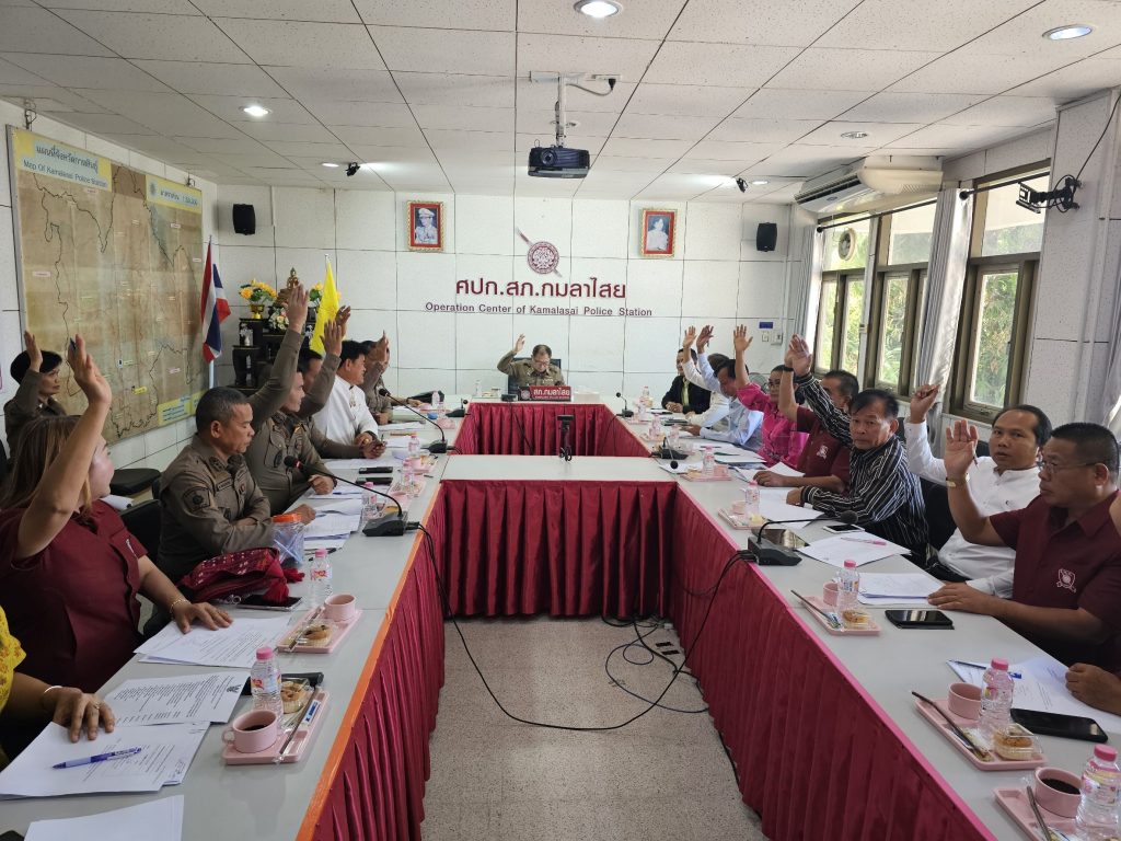 เมื่อวันที่ 13 กุมภาพันธ์ 2568 เวลา 13.30 น. พ.ต.อ.ธีรวุฒิ วงศาอ้วน ผกก.สภ.กมลาไสย ทำหน้าที่ประธาน กต.ตร.ฯ ได้เรียกคณะกรรมการ กต.ตร.สภ.กมลาไสย ที่ได้รับการแต่งตั้งตามคำสั่ง กต.ตร.จว.กาฬสินธุ์ ที่ 06/2568 ลงวันที่ 15 มกราคม 2568 เรื่องแต่งตั้งคณะกรรมการ กต.ตร.สภ.กมลาไสย เพื่อร่วมกันประชุม ปรึกษาหารือ วางแผน กำหนดแนวทางในการปฏิบัติงานของคณะกรรมการ กต.ตร.สภ.กมลาไสย และที่ประชุมได้ดำเนินการพิจารณาคัดเลือกประธาน กต.ตร.ชุดใหม่ โดยที่ประชุมได้มีมติเรียก นายศิริวัฒน์ จันทรเพ็ชร เป็นประธาน กต.ตร.คนใหม่ โดยมี นายพูนเพิ่ม พรไตรศักดิ์ ปลัดอำเภอกมลาไสย , พ.ต.ท.นครินทร์ ศรีอัครวิเนต รอง ผกก.ป.สภ.กมลาไสย , พ.ต.ท.ประพนธ์ ภูจอมนิล รอง ผกก.(สอบสวน) สภ.กมลาไสย , พ.ต.ท.มงคล เจียงภูเขียว สวป.สภ.กมลาไสย พร้อมด้วยคณะกรรมการ กต.ตร.สภ.กมลาไสย ที่ได้รับการแต่งตั้ง และ พ.ต.ท.ภูษิต โคตรแสงอ่อน สว.อก.สภ.กมลาไสย เลขานุการ กต.ตร. และเจ้าหน้าที่ธุรการงาน กต.ตร. สภ.กมลาไสย เข้าร่วมประชุม ณ ห้อง ศปก.สภ.กมลาไสย