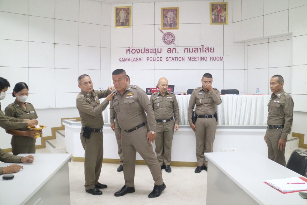 เมื่อวันที่ 15 พฤศจิกายน 2565 เวลา 13.00 น. พ.ต.อ.ธีรวุฒิ วงศาอ้วน ผกก.สภ.กมลาไสย ได้ทำพิธีประดับยศให้กับข้าราชการตำรวจที่ได้เลื่อนยศสูงขึ้น จำนวน 11 นาย ประกอบด้วย ร.ต.อ.บันจบ ผลสว่าง , ร.ต.อ.ประกอบ พรมคำ , ร.ต.อ.วสันต์ หันประดิษฐ์ , ร.ต.อ.มีชัย นิระภาพ , ร.ต.อ.สุนทร อัดโดดดร , ร.ต.ท.เกียรติศักดิ์ โพชะราช , ร.ต.ท.เด็ดดวง ภูสงวน , ร.ต.ท.พฤทธิ์ ชื่นตา , ร.ต.ท.สมศรี อนันทวรรณ , ร.ต.ท.สมัย นิระภาพ และ ร.ต.ท.สำฤทธิ์ ภูปรางค์ ณ ห้องประชุมชั้น 4 ที่ทำการ สภ.กมลาไสย