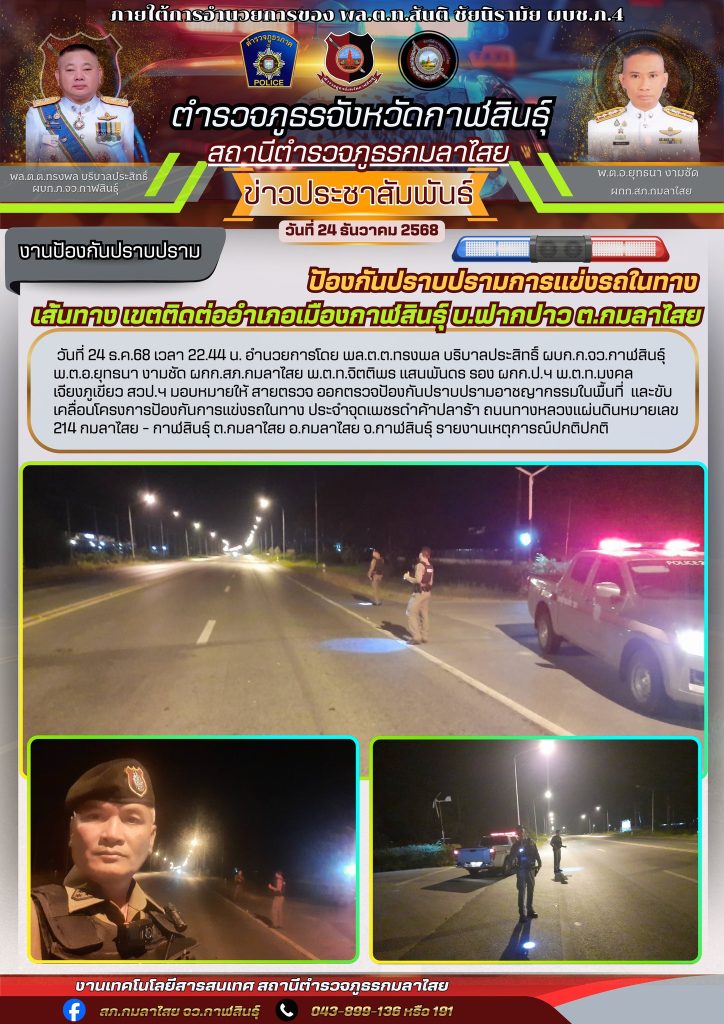ป้องกันปราบปรามการแข่งรถในทาง 24 ธันวาคม 2568 โดย kasai policeman / การปฏิบัติหน้าที่ของตำรวจ,งานป้องกันปราบปราม FacebookFacebookXXLINELine