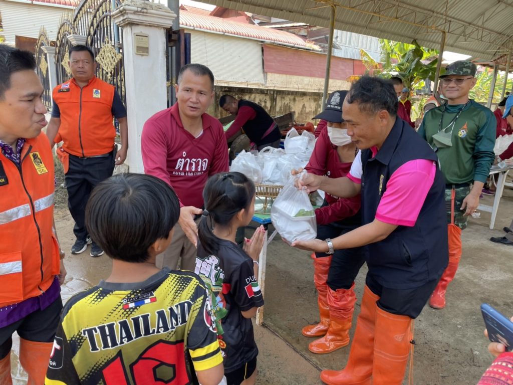 เมื่อวันที่ 4 พฤศจิกายน 2565 เวลา 10.00 น. นายศุภศิษย์ กอเจริญยศ รองผู้ว่าราชการจังหวัดกาฬสินธุ์ รักษาราชการแทนผู้ว่าราชการจังหวัดกาฬสินธุ์ พร้อมด้วย นายณัฐพล เพียรภาลุน ปลัดอำเภอรักษาการแทนนายอำเภอกมลาไสย และหัวหน้าส่วนราชการต่าง ๆ ฝ่ายปกครอง ทหาร เดินทางเข้าร่วมกิจกรรมครัวโรงพัก สภ.กมลาไสย ช่วยเหลือผู้ประอุทกภัยที่บ้านแจ้งจม หมู่ 7 ตำบลเจ้าท่า อำเภอกมลาไสย จังหวัดกาฬสินธุ์ โดยมี พันตำรวจเอก ธีรวุฒิ วงศาอ้วน ผู้กำกับการสถานีตำรวจ และข้าราชการตำรวจจิตอาสา พร้อมประชาชนในพื้นที่ ต้องรับและรับแจกสิ่งของเครื่องอุปโภคบริโภค