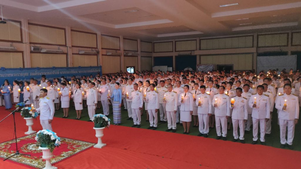 พิธีจุดเทียนถวายพระพรฯ 12 สิงหาคม 2567 โดย admin / ข่าวภารกิจผู้บังคับบัญชา,ประชาสัมพันธ์กิจกรรมของหน่วย วันที่ 12 สิงหาคม 2567 เวลา 18.00 น.พ.ต.อ.ธีรวุฒิ วงศาอ้วน ผกก.สภ.กมลาไสยพ.ต.ท.นครินทร์ ศรีอัครวิเนต รอง ผกก.ป.ฯพ.ต.ท.มงคล เจียงภูเขียว สวป.ฯพ.ต.ท.มณี สารขันธ์ สว.(สอบสวน)ฯพร้อมด้วยข้าราชการตำรวจ สภ.กมลาไสยร่วมกิจกรรมเฉลิมพระเกียรติสมเด็จพระนางเจ้าสิริกิติ์ พระบรมราชินีนาถ พระบรมราชชนนีพ้นปีหลวง เนื่องในโอกาสวันเฉลิมพระชนมพรรษา 12 สิ่งหาคม 2567 ในพิธีถวายเครื่องราชสักการะและวางพานพุ่ม และพิธีจุดเทียนถวายพระพรชัยมงคลโดยมี นายพุทธภูมิ นาชัยเริ่ม นายอำเภอกมลาไสย เป็นประธานในพิธี พร้อมด้วยหัวหน้าส่วนราชการต่าง ๆ ข้าราชการฯ ผู้นำส่วนท้องถิ่น กำนัน ผู้ใหญ่บ้าน ฯ ณ หอประชุมโรงเรียนพิพัฒน์ราษฎร์บำรุง ตำบลกมลาไสย อำเภอกมลาไสย จังหวัดกาฬสินธุ์ FacebookFacebookXXLINELine