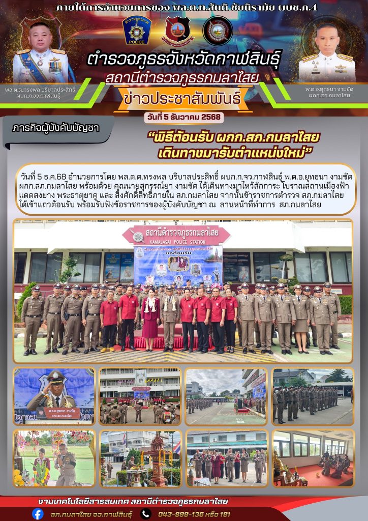 พิธีต้อนรับ ผกก.สภ.กมลาไสย 5 ธันวาคม 2568 โดย kasai policeman / การปฏิบัติหน้าที่ของตำรวจ,ข่าวภารกิจผู้บังคับบัญชา FacebookFacebookXXLINELine