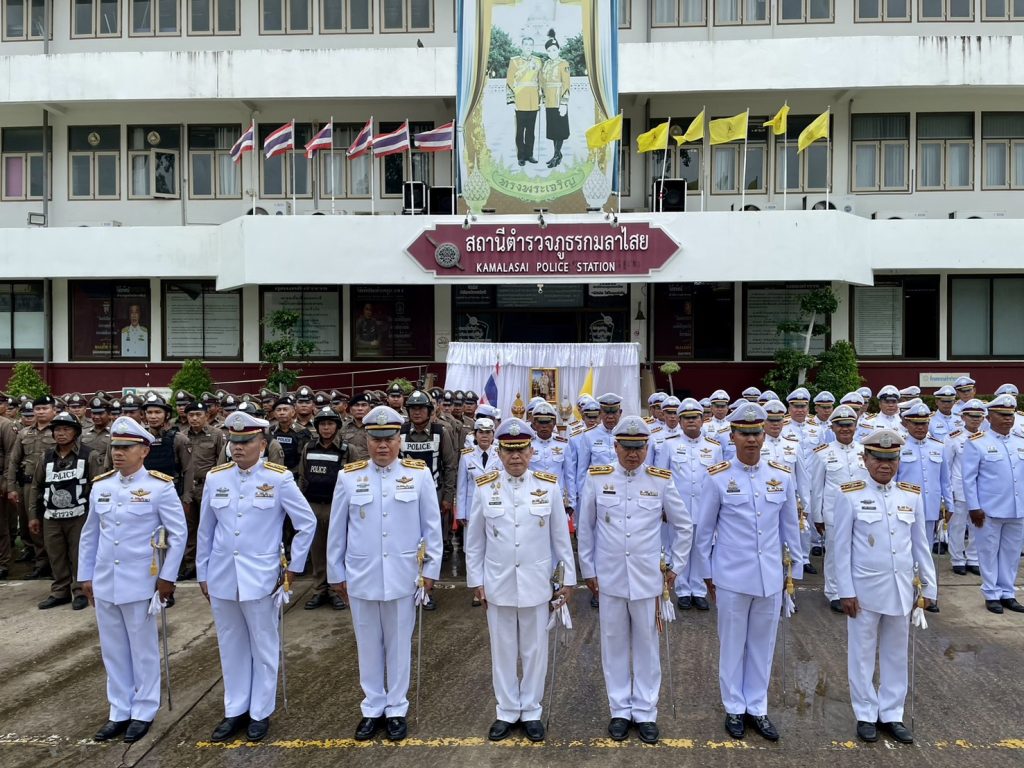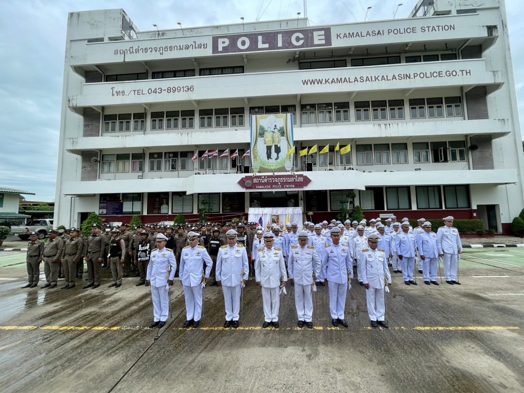 เมื่อวันที่ 28 กรกฎาคม 2566 เวลา 09.00 น. พ.ต.ท.ธีรวุฒิ วงศาอ้วน ผกก.สภ.กมลาไสย , พ.ต.ท.ประพนธ์ ภูจอมนิล รอง ผกก.(สอบสวน)ฯ , พ.ต.ท.นครินทร์ ศรีอัครวิเนต รอง ผกก.ป.ฯ , พ.ต.ท.ถาวร ยอดยรรยง รอง ผกก.สส.ฯ , พ.ต.ท.มงคล เจียงภูเขียว สวป.ฯ , พ.ต.ท.ภูษิต โคตรแสงอ่อน สว.อก.ฯ , พ.ต.ท.มณี สารขันธ์ สว.(สอบสวน)ฯ และ พ.ต.ต.อมร เดชศรี สว.สส.ฯ พร้อมด้วยข้าราชการตำรวจ สภ.กมลาไสย ได้ร่วมทำพิธีถวายสัตย์ปฏิญาณเพื่อเป็นข้าราชการที่ดี เนื่องในโอกาสพระราชมหามงคลเฉลิมพระชนมพรรษา 6 รอบ พระบาทสมเด็จพระเจ้าอยู่หัว ในวันที่ 28 กรกฎาคม 2567 ณ บริเวณหน้าที่ทำการสถานีตำรวจภูธรกมลาไสย