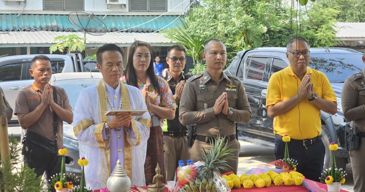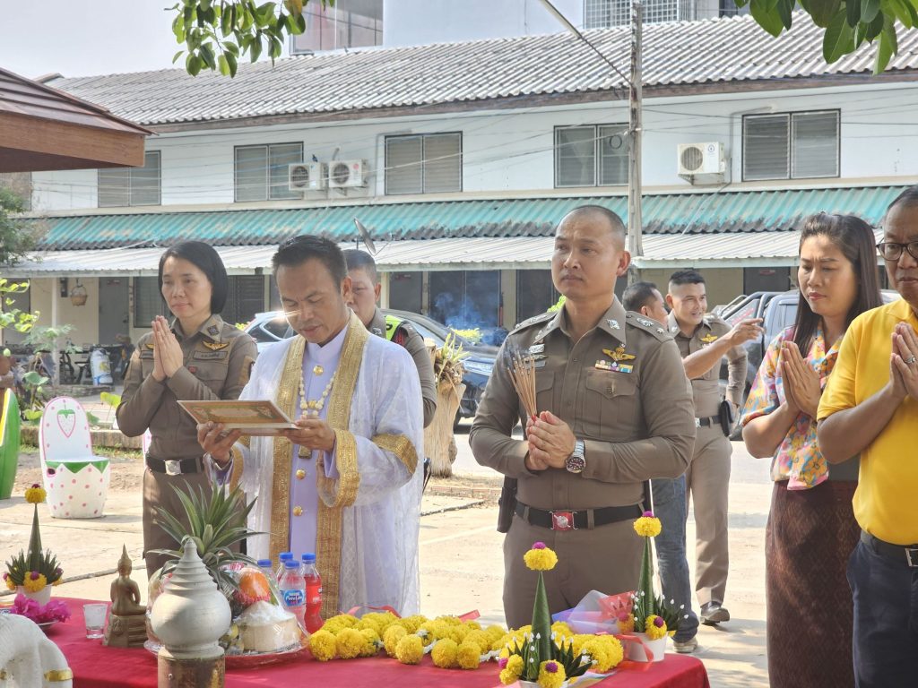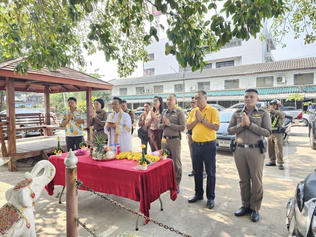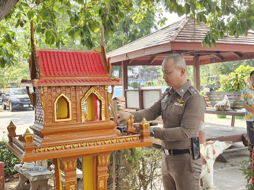 พิธีทางตั้งศาล หน้า สภ.กมลาไสย 8 เมษายน 2568 โดย admin / การปฏิบัติหน้าที่ของตำรวจ,การปฏิบัติหน้าที่ของตำรวจ,งานจราจร,การปฏิบัติหน้าที่ของตำรวจ,งานป้องกันปราบปราม,งานชุมชนสัมพันธ์,การปฏิบัติหน้าที่ของตำรวจ,งานป้องกันปราบปราม วันที่ 8 เมษายน 2568 เวลา 09.00 น.พ.ต.อ.ธีรวุฒิ วงศาอ้วน ผกก.สภ.กมลาไสย มอบหมายให้พ.ต.ท.จิตติพร แสนพันดร รอง ผกก.ป.ฯ พ.ต.ท.มงคล เจียงภูเขียว สวป.ฯ พ.ต.ท.วีระชาติ คำเพราะ สว.สส.ฯ พ.ต.ต.หญิง อรพรรณ ศรีนวลอ่อน สวป.(ชส.)ฯพร้อมด้วยข้าราชการตำรวจ สภ.กมลาไสย ร่วมกันทำพิธีจัดตั้งศาลใต้ต้นไทรใหญ่ หน้าที่ทำการ สภ.กมลาไสย FacebookFacebookXXLINELine