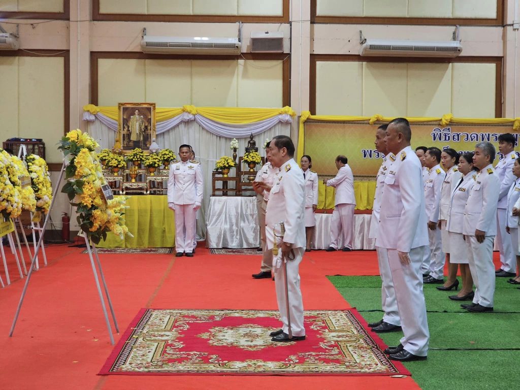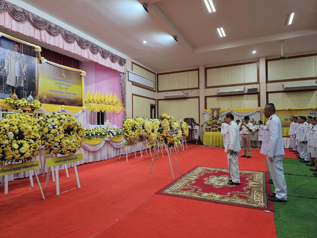 พิธีน้อมรำลึกฯ เนื่องในวันสำคัญ 15 ตุลาคม 2567 โดย admin / ข่าวภารกิจผู้บังคับบัญชา,ประชาสัมพันธ์กิจกรรมของหน่วย วันที่ 13 ตุลาคม 2567 เวลา 06.30 น.พ.ต.อ.ธีรวุฒิ วงศาอ้วน ผกก.สภ.กมลาไสยพ.ต.ท.ประพนธ์ ภูจอมนิล รอง ผกก.(สอบสวน).ฯพ.ต.ท.ถาวร ยอดยรรยง รอง ผกก.สส.ฯพ.ต.ต.หญิง อรพรรณ ศรีนวลอ่อน สวป.(ชส.)ฯพร้อมด้วยข้าราชการตำรวจ สภ.กมลาไสยร่วมกิจกรรมบำเพ็ญกุศลและพิธีน้อมรำลึกเนื่องในวันคล้ายวันสวรรคต พระบาทสมเด็จพระบรมชนกาธิเบศร มหาภูมิพลอุลยเดชมหาราช บรมนาถบพิตร โดยมีพิธีสวดพระพุทธมนต์และทำบุญตักบาตรถวายพระราชกุศลโดยมี นายพุทธภูมิ นาชัยเริ่ม นายอำเภอกมลาไสย เป็นประธานในพิธี พร้อมด้วยหัวหน้าส่วนราชการต่าง ๆ ข้าราชการฯ ผู้นำส่วนท้องถิ่น กำนัน ผู้ใหญ่บ้าน ฯ ณ หอประชุมโรงเรียนพิพัฒน์ราษฎร์บำรุง ตำบลกมลาไสย อำเภอกมลาไสย จังหวัดกาฬสินธุ์ FacebookFacebookXXLINELine
