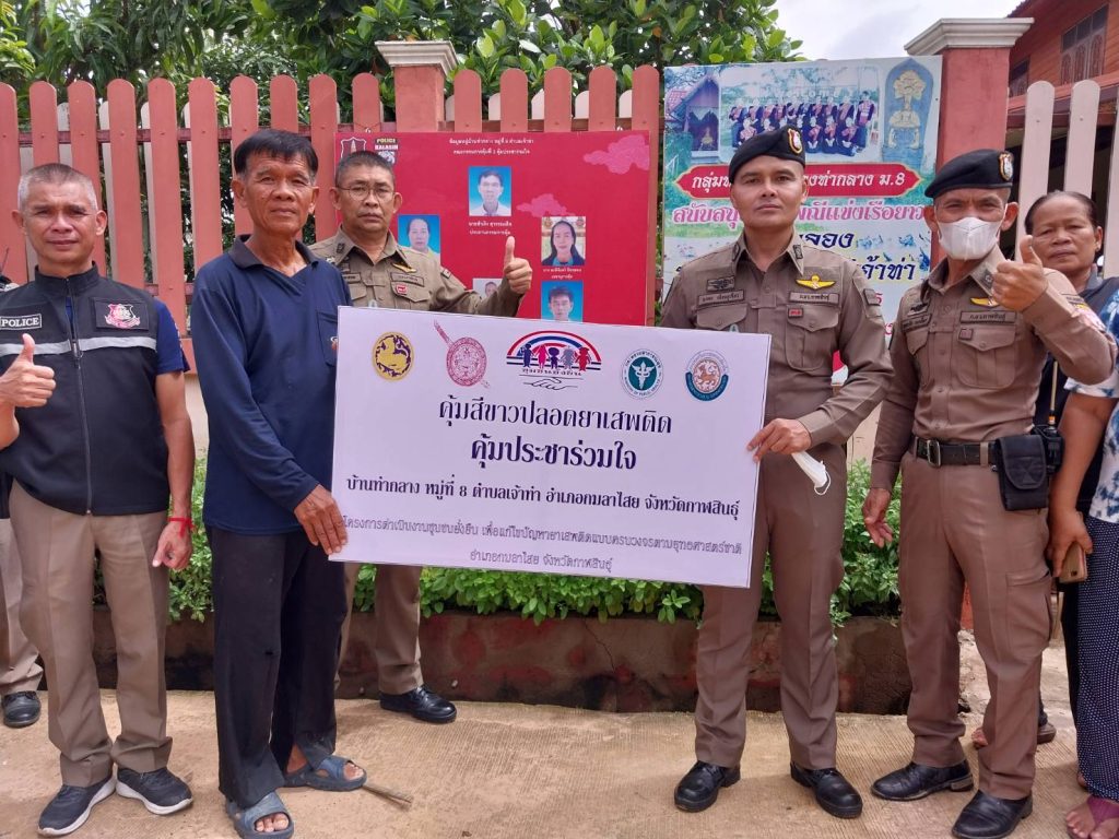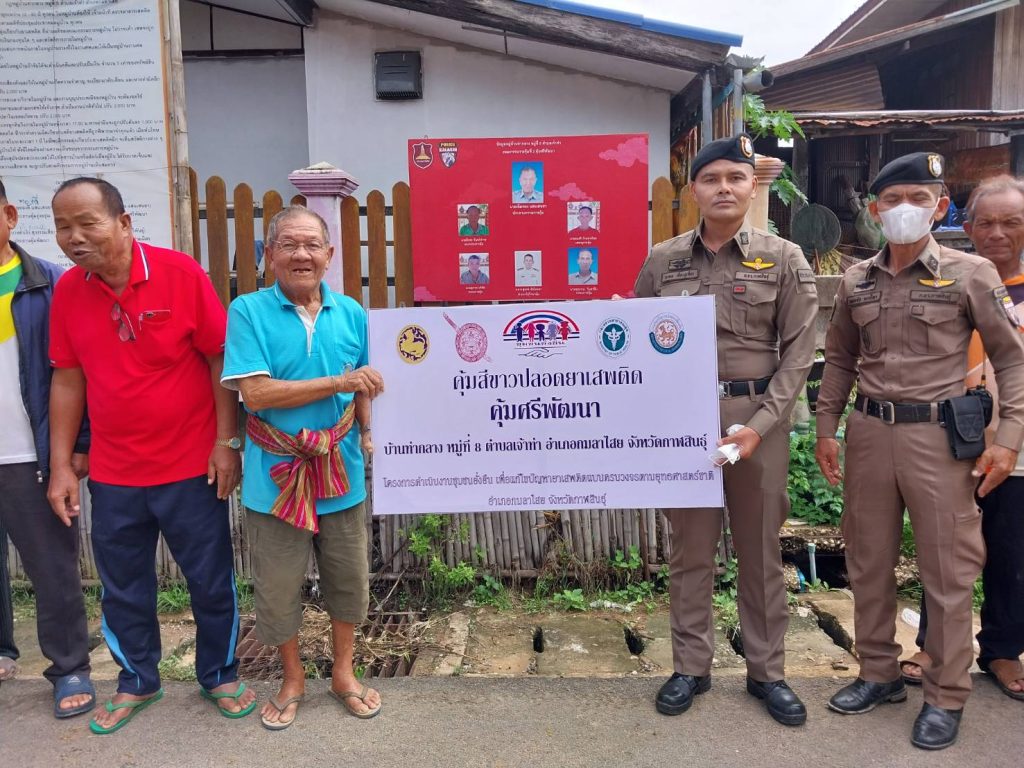 วันที่ 19 มิ.ย.2566 เวลา 10.00 น. พ.ต.อ.ธีรวุฒิ วงศาอ้วน ผกก.สภ.กมลาไสย พ.ต.ท.นครินทร์ ศรีอัครวิเนต รอง ผกก.ป.ฯ มอบหมายให้ พ.ต.ท.มงคล เจียงภูเขียว สวป.ฯ พร้อมด้วยตำรวจ ชุด ชมส.สภ.กมลาไสย ดำเนินการมอบป้ายคุ้มสีขาวปลอดยาเสพติด ให้กับประธานคุ้มและคณะกรรมการคุ้มตาม โครงการชุมชนยั่งยืนเพื่อแก้ไขปัญหายาเสพติดแบบครบวงจรตามยุทธศาสตร์ชาติ ประจำปี 2566