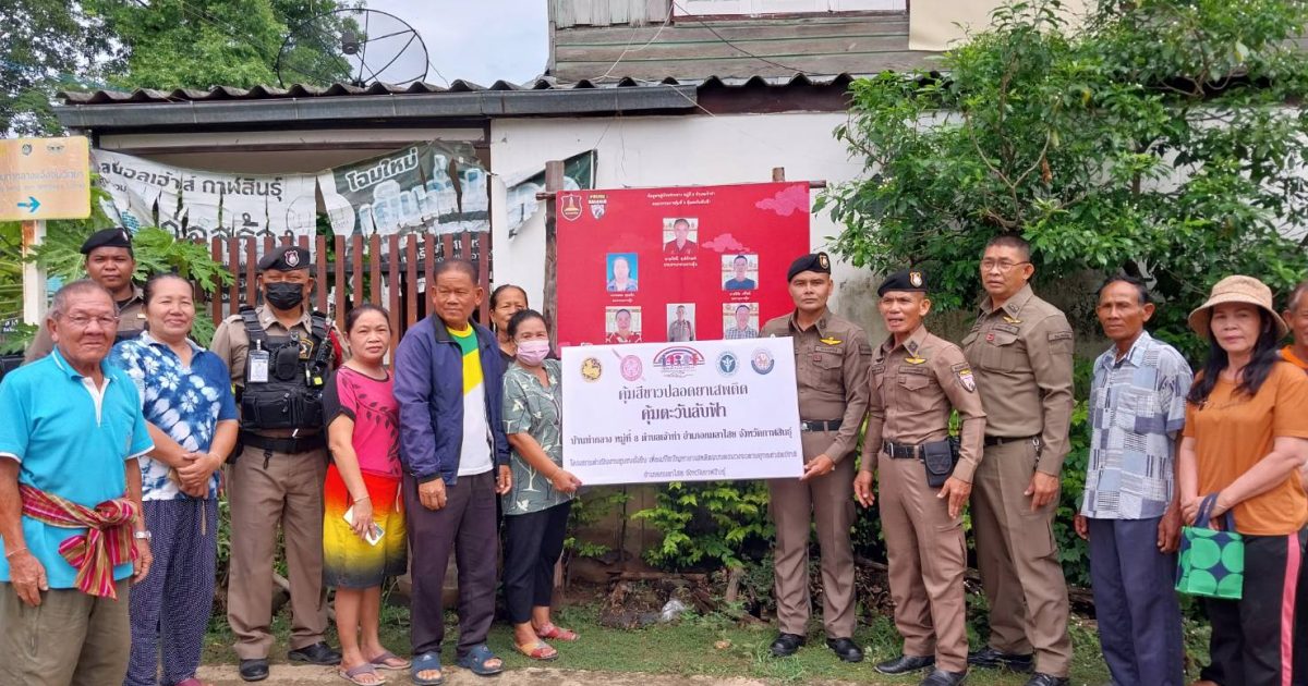 วันที่ 19 มิ.ย.2566 เวลา 10.00 น. พ.ต.อ.ธีรวุฒิ วงศาอ้วน ผกก.สภ.กมลาไสย พ.ต.ท.นครินทร์ ศรีอัครวิเนต รอง ผกก.ป.ฯ มอบหมายให้ พ.ต.ท.มงคล เจียงภูเขียว สวป.ฯ พร้อมด้วยตำรวจ ชุด ชมส.สภ.กมลาไสย ดำเนินการมอบป้ายคุ้มสีขาวปลอดยาเสพติด ให้กับประธานคุ้มและคณะกรรมการคุ้มตาม โครงการชุมชนยั่งยืนเพื่อแก้ไขปัญหายาเสพติดแบบครบวงจรตามยุทธศาสตร์ชาติ ประจำปี 2566