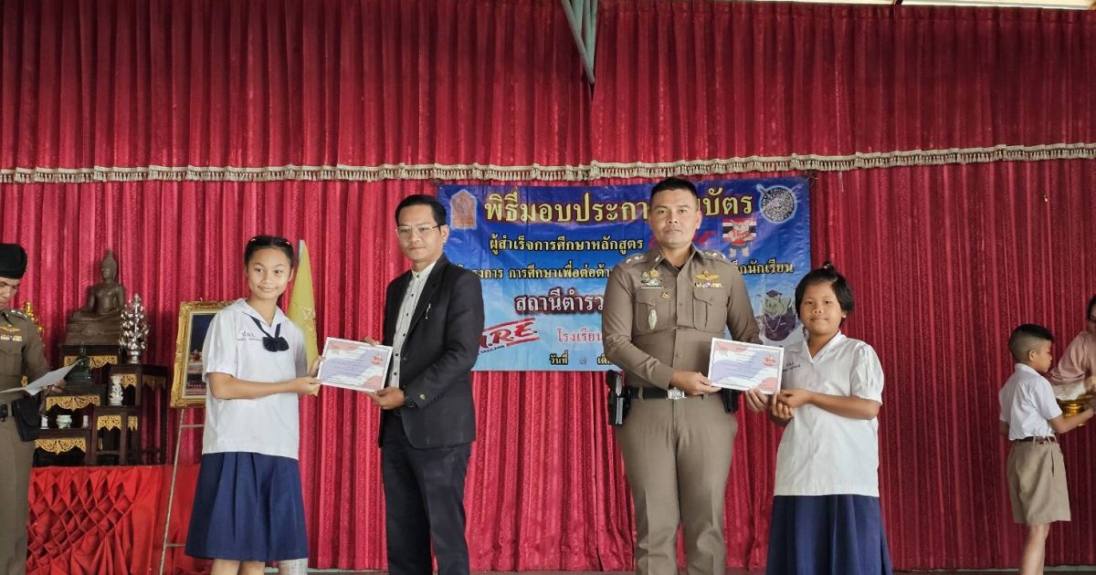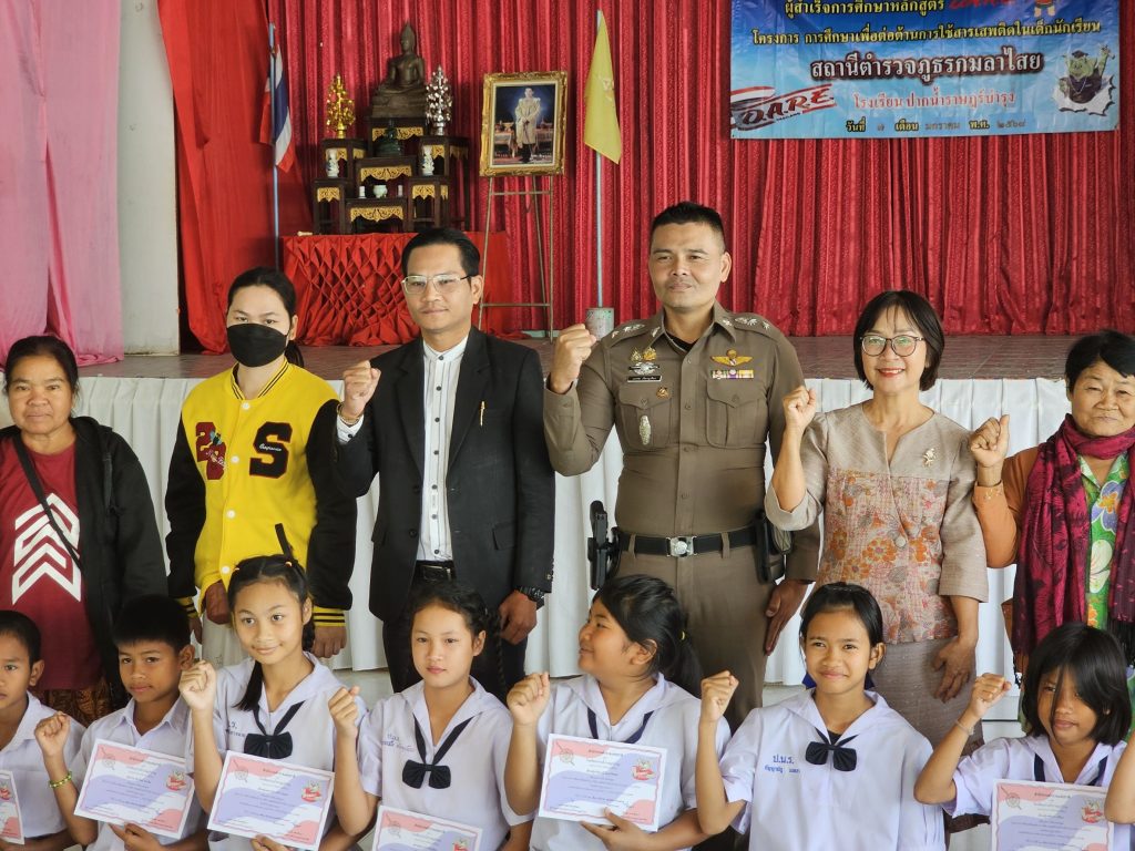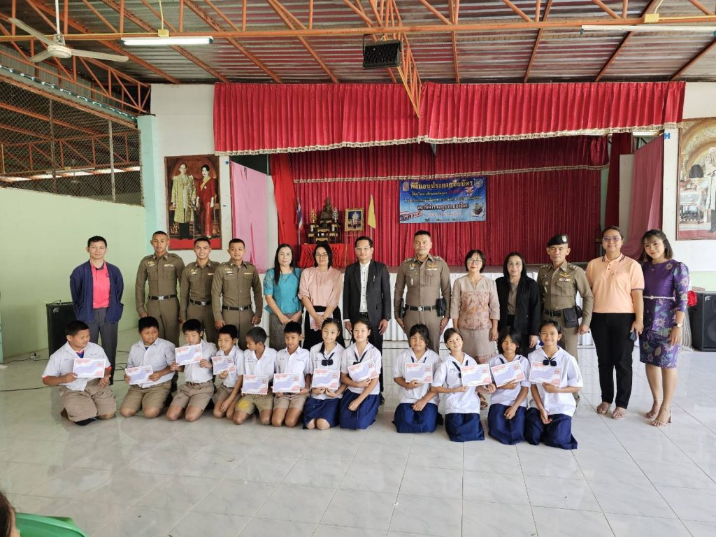 มอบใบประกาศเกียรติบัตร 7 มกราคม 2568 โดย admin / การปฏิบัติหน้าที่ของตำรวจ,การปฏิบัติหน้าที่ของตำรวจ,งานป้องกันปราบปราม,ประชาสัมพันธ์กิจกรรมของหน่วย วันที่ 7 มกราคม 2568 เวลา 09.30 น.โดยการอำนวยการของพ.ต.อ.ธีรวุฒิ วงศาอ้วน ผกก.สภ.กมลาไสยพ.ต.ท.นครินทร์ ศรีอัครวิเนต รอง ผกก.ป.สภ.กมลาไสยมอบหมายให้พ.ต.ท.มงคล เจียงภูเขียว สวป.สภ.กมลาไสยพร้อมด้วย ร.ต.อ.เทอดชัย ดอนไพร รอง.สวป.ฯ/ครูตำรวจแดร์ จัดทำพิธีมอบประกาศนียบัตร ให้แก่นักเรียนที่ร่วมโครงการฯ ประจำภาคเรียนที่1 ปีการศึกษา 2567 ที่ ร.ร.ปากน้ำราษฎร์บำรุง ต.กมลาไสย อ.กมลาไสย จ.กาฬสินธุ์ โดยมี นายอาทิตย์ โพนศรีสม ผู้อำนวยการโรงเรียน/พร้อมคณะครูอาจารย์,นักเรียน,ผู้ปกครอง, ให้การต้อนรับและร่วมกิจกรรม FacebookFacebookXXLINELine