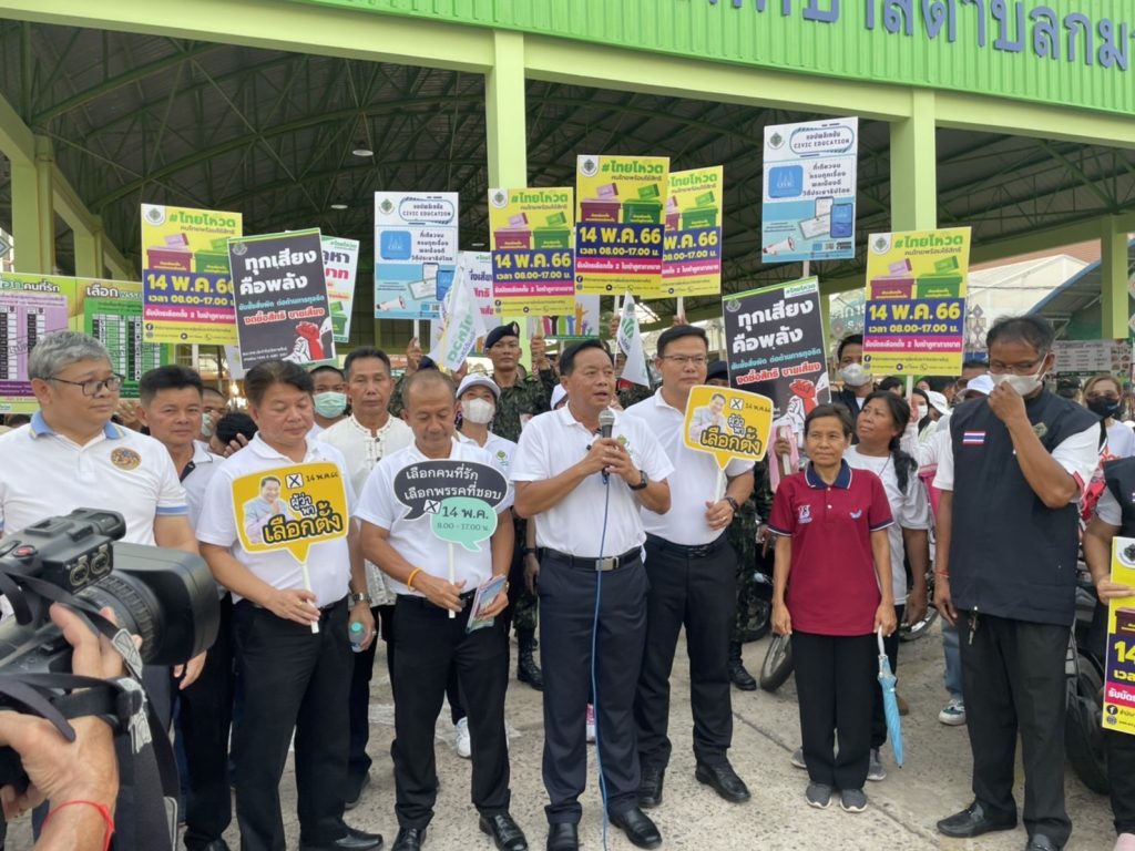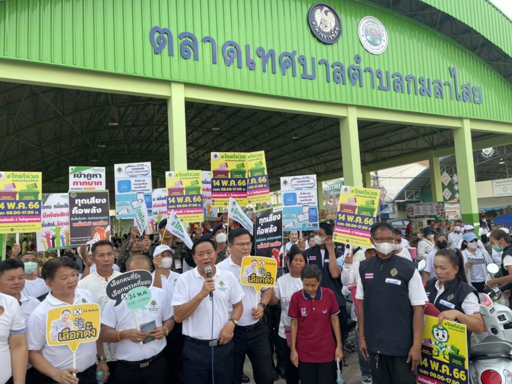 โดยมี นายศุภสิทธิ์ กอเจริญยศ ผู้ว่าราชการจังหวัดกาฬสินธุ์ เป็นประธานฯ พร้อมด้วยหัวหน้าส่วนราชการต่างๆ และเจ้าหน้าที่เกี่ยวข้องร่วมกิจกรรมรณรงค์เชิญชวนออกไปใช้สิทธิเลือกตั้ง ส.ส. 2566 “Big day #ไทยโหวต คนไทยพร้อม ใช้สิทธิ์ สำนักงานคณะกรรมการการเลือกตั้งประจำจังหวัดกาฬสินธุ์ โดยรณรงค์ ถนนสาย 217 (กาฬสินธุ์-ร้อยเอ็ด) บริเวณหน้าตลาดสดเทศบาลกมลาไสย