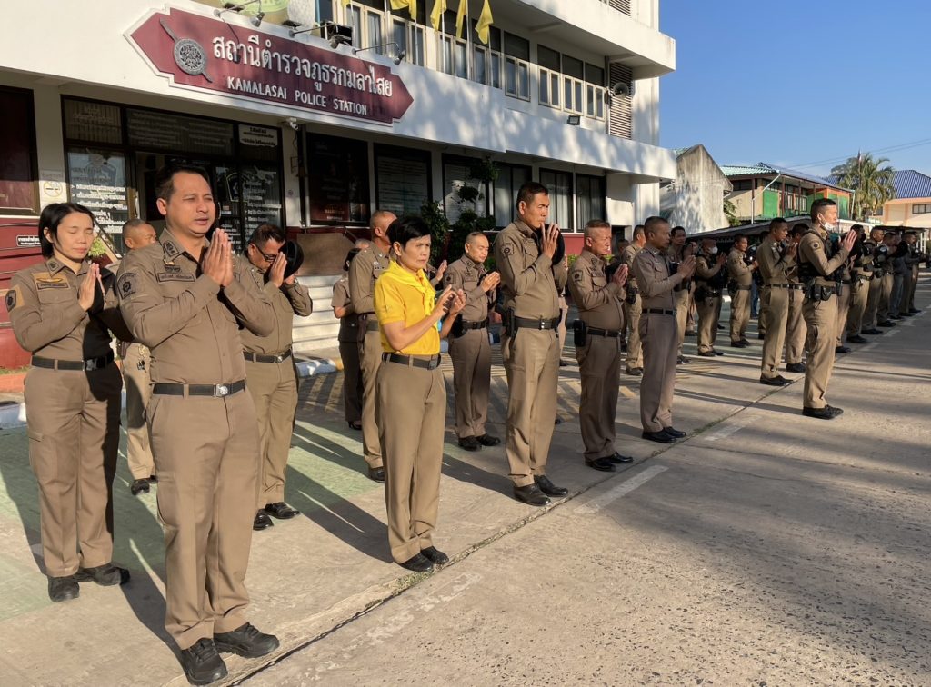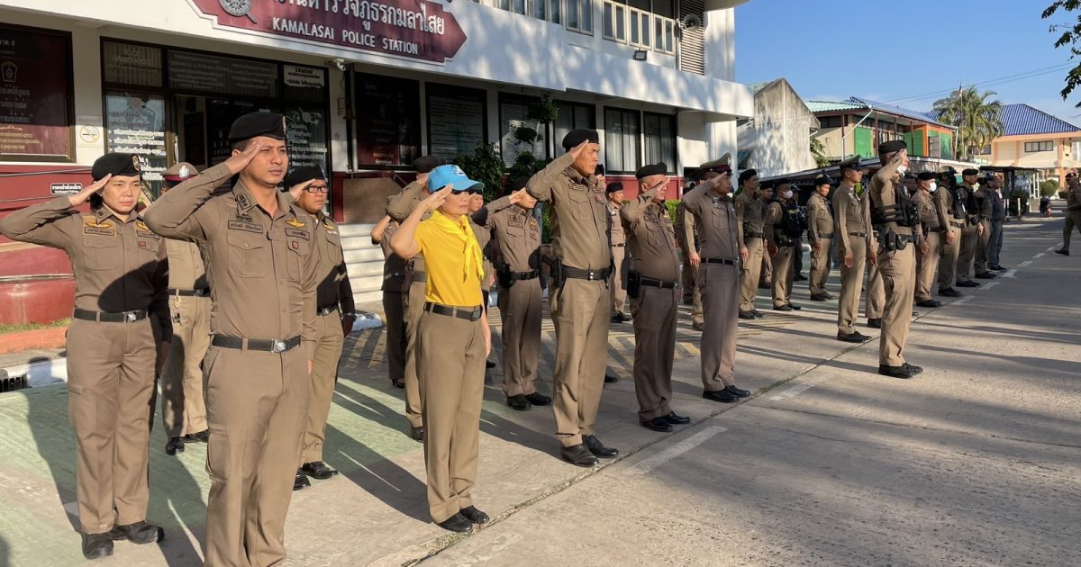 รวมแถวเคารพธงชาติประจำสัปดาห์ 14 มกราคม 2568 โดย admin / ข่าวภารกิจผู้บังคับบัญชา,ประชาสัมพันธ์กิจกรรมของหน่วย วันที่ 14 มกราคม 2568 เวลา 08.00 น. พ.ต.อ.ธีรวุฒิ วงศาอ้วน ผกก.สภ.กมลาไสยมอบหมายให้ พ.ต.ท.นครินทร์ ศรีอัครวิเนต รอง ผกก.ป.ฯ พ.ต.ต.อมร เดชศรี สว.สส.ฯ พ.ต.ต.หญิง อรพรรณ ศรีนวลอ่อน สวป.(ชส.)ฯพร้อมด้วยข้าราชการตำรวจ สภ.กมลาไสย และ นักเรียนนายสิบตำรวจฝึกงาน ร่วมแสดงความเคารพธงชาติ ร้องเพลงสรรเสริญพระบารมี สวดมนต์ไหว้พระ กล่าวคำสัตย์ปฏิญาณ อุดมคติตำรวจ ตรวจการแต่งกาย ทรงผม อุปกรณ์เครื่องเเต่งกาย ชี้แจงข้อราชการต่างๆ แล้วปล่อยแถวสายตรวจออกปฏิบัติหน้าที่ต่อไป ลานหน้าที่ทำการ สภ.กมลาไสย FacebookFacebookXXLINELine