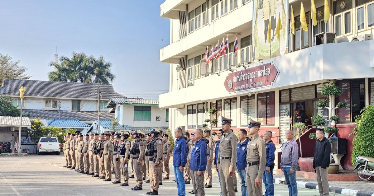 รวมแถวเคารพธงชาติประจำสัปดาห์ 21 มกราคม 2568 โดย admin / การปฏิบัติหน้าที่ของตำรวจ,ข่าวภารกิจผู้บังคับบัญชา,ประชาสัมพันธ์กิจกรรมของหน่วย วันที่ 21 มกราคม 2568 เวลา 08.00 น. พ.ต.อ.ธีรวุฒิ วงศาอ้วน ผกก.สภ.กมลาไสย พ.ต.ท.ประพนธ์ ภูจอมนิล รอง ผกก.(สอบสวน)ฯ พ.ต.ท.ถาวร ยอดยรรยง รอง ผกก.สส.ฯ พ.ต.ท.นครินทร์ ศรีอัครวิเนต รอง ผกก.ป.ฯ พ.ต.ท.ภูษิต โคตรแสงอ่อน สว.อก.ฯ พ.ต.ต.อมร เดชศรี สว.สส.ฯ พ.ต.ต.หญิง อรพรรณ ศรีนวลอ่อน สวป.(ชส.)ฯ พร้อมด้วยข้าราชการตำรวจ สภ.กมลาไสย และ นักเรียนนายสิบตำรวจฝึกงาน ร่วมแสดงความเคารพธงชาติ ร้องเพลงสรรเสริญพระบารมี สวดมนต์ไหว้พระ กล่าวคำสัตย์ปฏิญาณ อุดมคติตำรวจ ตรวจการแต่งกาย ทรงผม อุปกรณ์เครื่องเเต่งกาย ชี้แจงข้อราชการต่างๆ แล้วปล่อยแถวสายตรวจออกปฏิบัติหน้าที่ต่อไป ลานหน้าที่ทำการ สภ.กมลาไสย FacebookFacebookXXLINELine