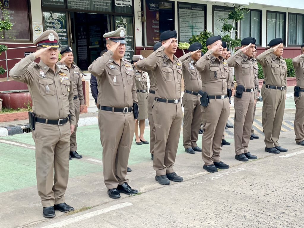รวมแถวเคารพธงชาติ ประจำสัปดาห์ 25 กุมภาพันธ์ 2568 โดย admin / การปฏิบัติหน้าที่ของตำรวจ,ข่าวภารกิจผู้บังคับบัญชา วันที่ 25 กุมภาพันธ์ 2568 เวลา 08.00 น.พ.ต.อ.ธีรวุฒิ วงศาอ้วน ผกก.สภ.กมลาไสย พ.ต.ท.ประพนธ์ ภูจอมนิล รอง ผกก.(สอบสวน)ฯพ.ต.ท.นครินทร์ ศรีอัครวิเนต รอง ผกก.ป.ฯ พ.ต.ท.ถาวร ยอดยรรยง รอง ผกก.สส.ฯพ.ต.ท.มงคล เจียงภูเขียว สวป.ฯพ.ต.ท.ภูษิต โคตรแสงอ่อน สว.อก.ฯพ.ต.ท.อมร เดชศรี สว.สส.ฯพ.ต.ต.หญิง อรพรรณ ศรีนวลอ่อน สวป.(ชส.)ฯพร้อมด้วยข้าราชการตำรวจ สภ.กมลาไสย และ นักเรียนนายสิบตำรวจฝึกงาน ร่วมแสดงความเคารพธงชาติ ร้องเพลงสรรเสริญพระบารมี สวดมนต์ไหว้พระ กล่าวคำสัตย์ปฏิญาณ อุดมคติตำรวจ ตรวจการแต่งกาย ทรงผม อุปกรณ์เครื่องเเต่งกาย ชี้แจงข้อราชการต่างๆ แล้วปล่อยแถวสายตรวจออกปฏิบัติหน้าที่ต่อไป ลานหน้าที่ทำการ สภ.กมลาไสย FacebookFacebookXXLINELine