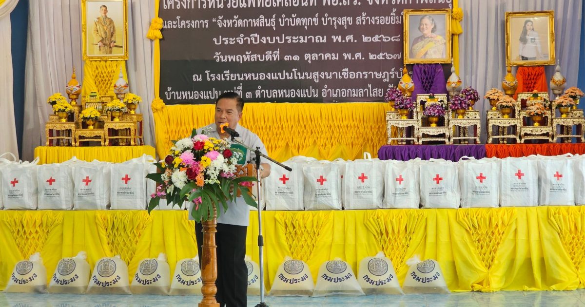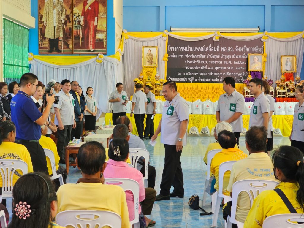 เมื่อวันที่ 31 ตุลาคม 2567 เวลา 09.30 น. พล.ต.ต.อรรคพงศ์ พิมลศิริ รอง ผบช.ภ.4 รรท.ผบก.ภ.จว.กาฬสินธุ์ มอบหมายให้ พ.ต.อ.ธีรวุฒิ วงศาอ้วน ผกก.สภ.กมลาไสย และ พ.ต.ท.มงคล เจียงภูเขียว สวป.สภ.กมลาไสย เป็นตัวแทนเข้าร่วมงานโครงการหน่วยแพทย์เคลื่อนที่ (พอ.สว.) และโครงการจังหวัดกาฬสินธุ์บำบัดทุกข์ บำรุงสุข สร้างรอยยิ้มให้กับประชาชน ประจำปีงบประมาณ 2568 โดยมี นายสนั่น พงษ์อักษร ผู้ว่าราชการจังหวัดกาฬสินธุ์ เป็นประธาน พร้อมด้วย นายรุจติศักดิ์ รังษี รองผู้ว่าราชการจังหวัดกาฬสินธุ์ , นางเฉลิมขวัญ หล่อตระกูล นายก อบจ.กาฬสินธุ์ ,นายพุทธภูมิ นาชัยเริ่ม นายอำเภอกมลาไสย ,หัวหน้าส่วนราชการจังหวัดกาฬสินธุ์ ,หัวหน้าส่วนราชการอำเภอกมลาไสย ,ผู้นำส่วนท้องถิ่น ,ภาคส่วนราชการและภาคส่วนประชาชน ร่วมในพิธี ณ โรงเรียนหนองแปนโนนสูงนาเชือกราษฎร์บำรุง ต.หนองแปน อ.กมลาไสย จ.กาฬสินธุ์