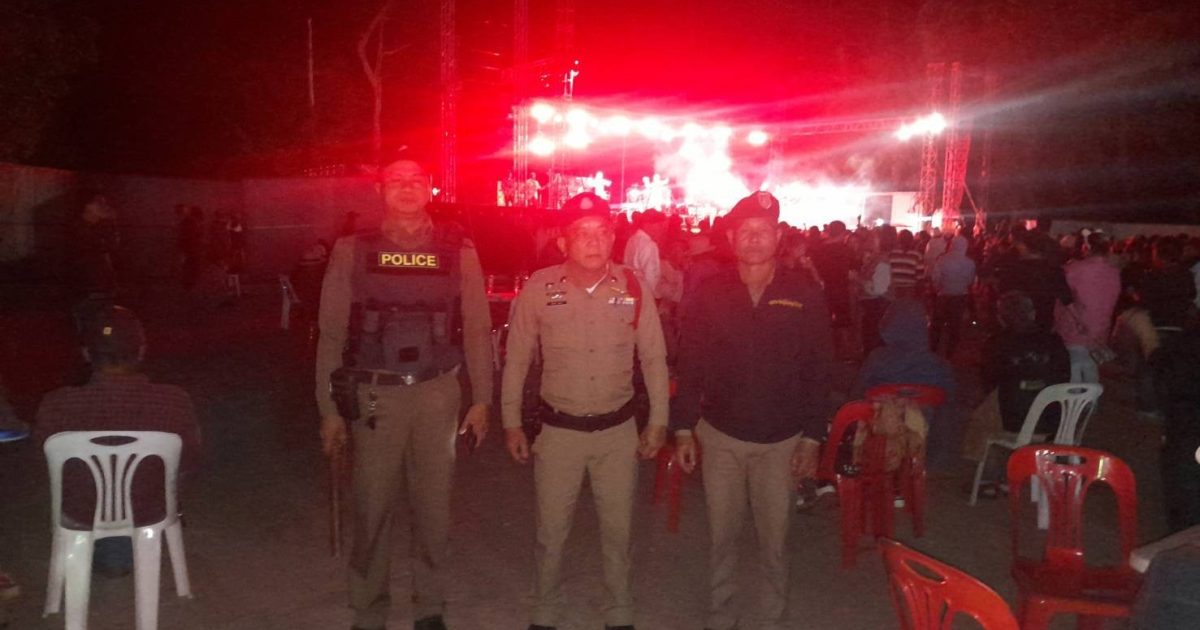 รักษาความสงบเรียบร้อยงานรื่นเริง 23 ธันวาคม 2567 โดย admin / การปฏิบัติหน้าที่ของตำรวจ,การปฏิบัติหน้าที่ของตำรวจ,งานป้องกันปราบปราม เมื่อวันที่ 23 ธันวาคม 2567 เวลา 20.00 น. ร.ต.อ.ธาณี สิงห์อ่อน รอง สวป.สภ.กมลาไสย พร้อมสายตรวจ รักษาความสงบเรียบร้อย การแสดงดนตรีงานสปอร์ตไนท์ บริเวณลานหน้าแฟลตสายตรวจ ต.หนองแปน อ.กมลาไสย จ.กาฬสินธุ์ ผลการปฏิบัติ : เป็นไปด้วยความเรียบร้อย/เหตุการณ์ปกติ FacebookFacebookXXLINELine