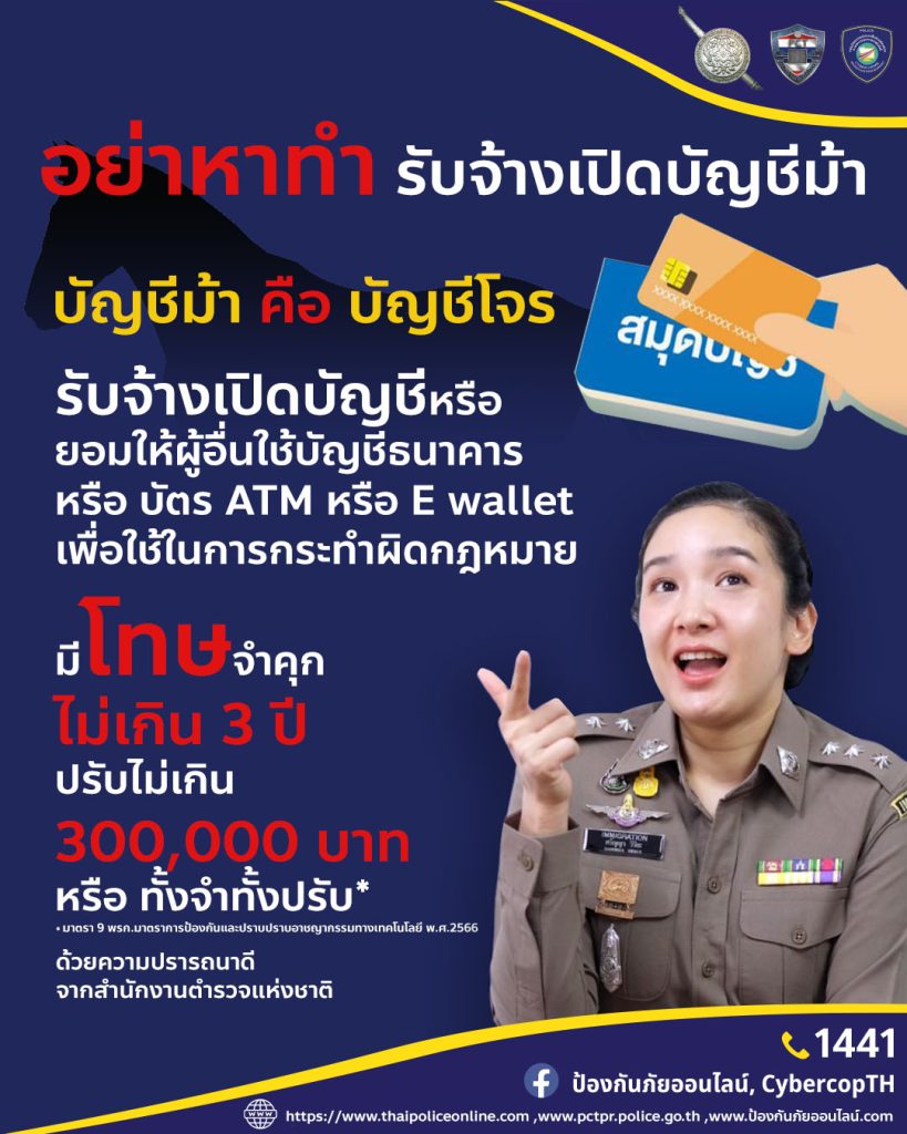 รับจ้างเปิดบัญชีม้า ผิดนะ! 21 มีนาคม 2566 โดย admin / ประชาสัมพันธ์กิจกรรมของหน่วย,ข่าวฝากประชาสัมพันธ์,สาระควรรู้ FacebookFacebookXXLINELine