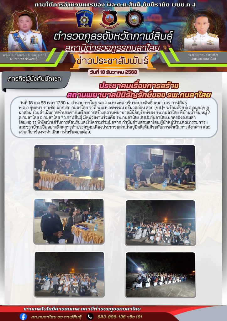 ร่วมประชุมกับชุมชน 18 ธันวาคม 2568 โดย kasai policeman / การปฏิบัติหน้าที่ของตำรวจ,ข่าวภารกิจผู้บังคับบัญชา FacebookFacebookXXLINELine
