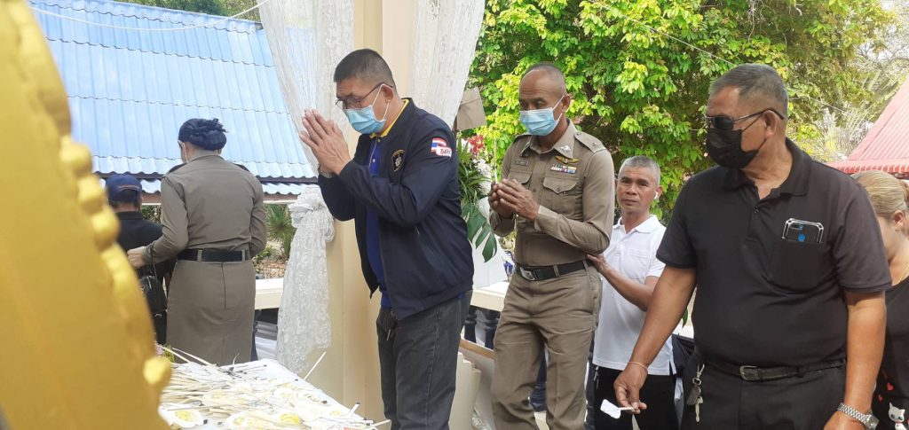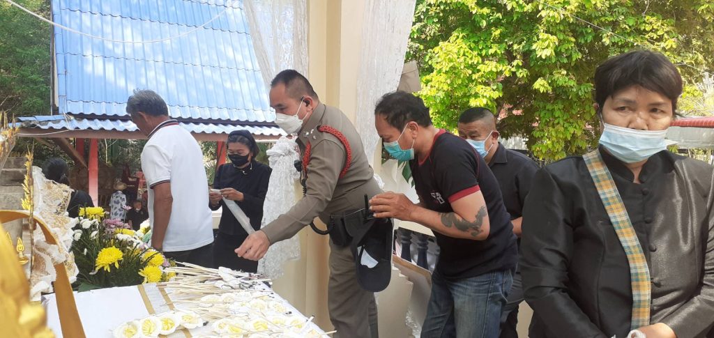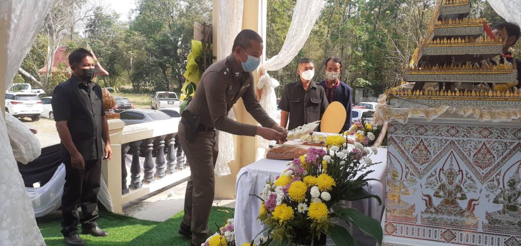 “ร่วมไว้อาลัยแก่ผู้วายชนม์” 7 มีนาคม 2566 โดย admin / ประชาสัมพันธ์กิจกรรมของหน่วย,ข่าวฝากประชาสัมพันธ์ เมื่อวันที่ 4 มีนาคม 2566 พ.ต.อ.ธีรวุฒิ วงศาอ้วน ผกก.สภ.กมลาไสย พร้อมด้วยข้าราชการตำรวจในสังกัด สภ.กมลาไสย เดินทางไปร่วมงานฌาปนกิจศพ คุณแม่คำ ธารบุญ ผู้วายชนม์มารดาของ ร.ต.ต.ประเสริฐ ธารบุญ รอง สว.(ป.) สภ.กมลาไสย ผู้ใต้บังคับบัญชา เพื่อเป็นการสร้างขวัญและกำลังใจและให้เกียรติแก่ผู้วายชนม์ในวาระสุดท้าย ณ วัดป่าเฉลิมพระเกียรติ รัชการที่9 ต.ห้วยโพธิ์ อ.เมืองกาฬสินธุ์ จว.กาฬสินธุ์ FacebookFacebookXXLINELine