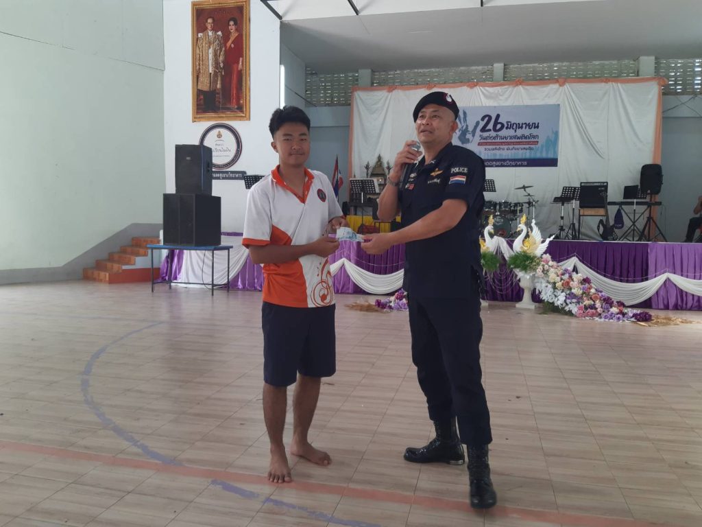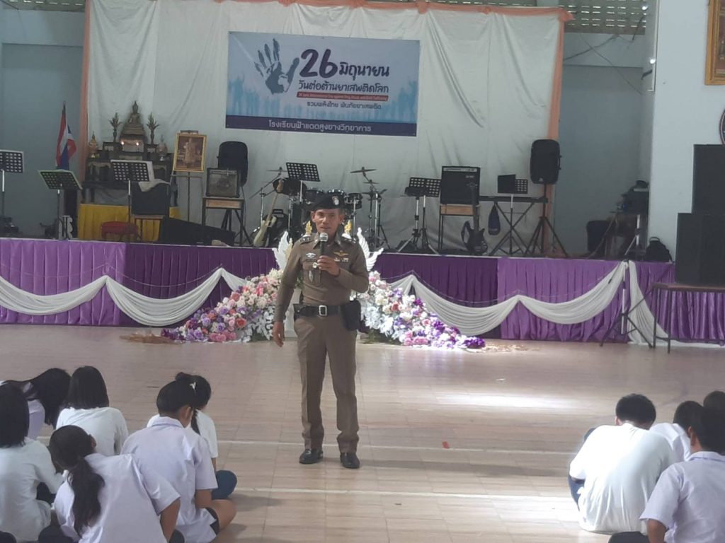 วันที่ 26 มิ.ย. 2566 เวลา13.00 น. ถึงเวลา 16.00 น. โดยการอำนวยการของ พ.ต.อ.ธีรวุฒิ วงศาอ้วน ผกก.สภ.กมลาไสย,พ.ต.ท.นครินทร์ ศรีอัครวิเนต รอง ผกก.ป.ฯ , พ.ต.ท.มงคล เจียงภูเขียว สวป.ฯ มอบหมายให้ข้าฯ ร.ต.อ.เทอดชัย ดอนไพร รอง สว.ป.ฯพร้อมด้วยด.ต.คมกฤช ภูนาสอน ผบ.หมู่ งานป้องกันปราบปราม สภ.กมลาไสย อำเภอกมลาไสย จังหวัดกาฬสินธุ์ เป็นวิทยากรบรรยายเรื่องยาเสพติดในวันต่อต้านยาเสพติดโลก โรงเรียนฟ้าแดดสูงยางวิทยาคาร ผลได้รับความสนใจจากเด็กนักเรียนเป็นอย่างดี