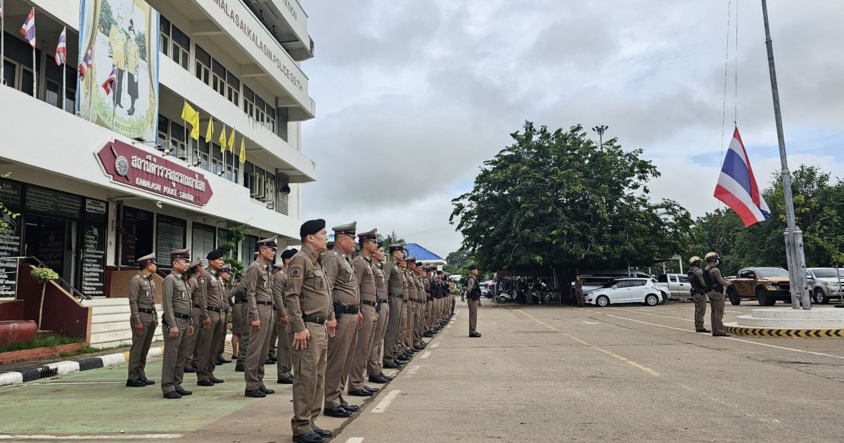วันธงชาติไทย 1 ตุลาคม 2567 โดย admin / ข่าวภารกิจผู้บังคับบัญชา,ประชาสัมพันธ์กิจกรรมของหน่วย วันที่ 1 ตุลาคม 2567 เวลา 08.00 น.พ.ต.อ.ธีรวุฒิ วงศาอ้วน ผกก.สภ.กมลาไสยพ.ต.ท.ประพนธ์ ภูจอมนิล รอง ผกก.(สอบสวน)สภ.กมลาไสยพ.ต.ท.นครินทร์ ศรีอัครวิเนต รอง ผกก.ป.สภ.กมลาไสยพ.ต.ท.ถาวร ยอดยรรยง รอง ผกก.สส.สภ.กมลาไสยพ.ต.ท.มงคล เจียงภูเขียว สวป.สภ.กมลาไสยพ.ต.ท.ภูษิต โคตรแสงอ่อน สว.อก.สภ.กมลาไสยพ.ต.ท.มณี สาระขันธ์ สว.(สอบสวน)สภ.กมลาไสยพ.ต.ท.อภิสิทธิ์ พลเตชะ สว.(สอบสวน)สภ.กมลาไสยพ.ต.ต.อมร เดชศรี สว.สส.สภ.กมลาไสย พร้อมด้วยข้าราชการตำรวจ สภ.กมลาไสยร่วมเข้าแถวเคารพธงชาติ เนื่องในวันพระราชทานธงชาติไทย ๒๘ กันยายน (Thai National Flag Day) ประจำปี ๒๕๖๗ ณ ลานหน้า สภ.กมลาไสย FacebookFacebookXXLINELine