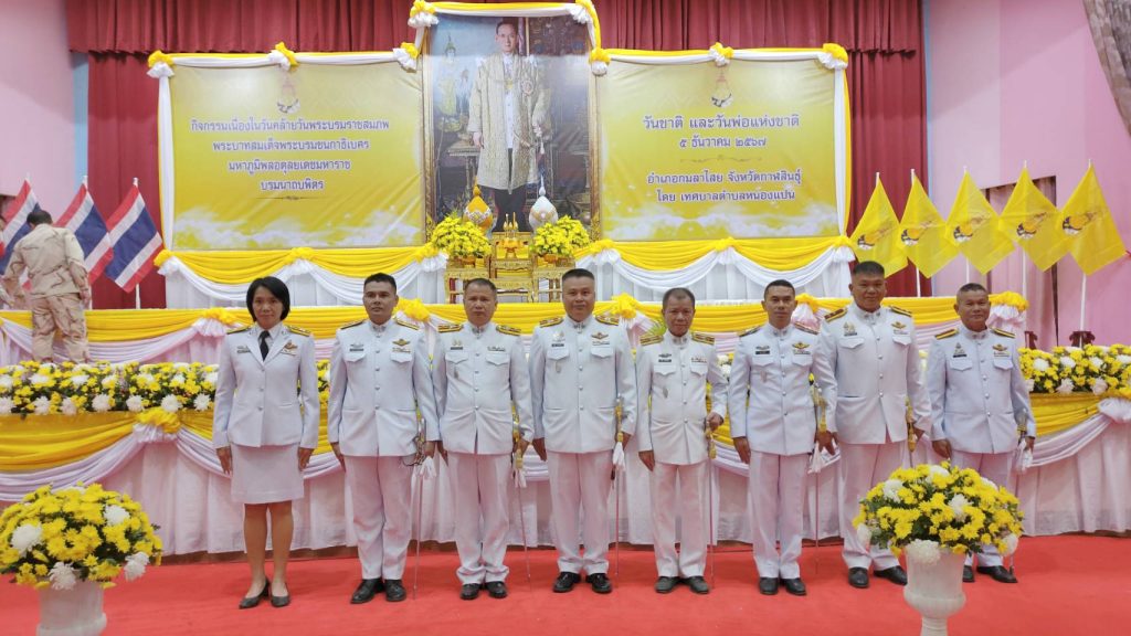 วันพ่อแห่งชาติ 5 ธันวาคม 2567 โดย admin / ข่าวภารกิจผู้บังคับบัญชา,ประชาสัมพันธ์กิจกรรมของหน่วย วันที่ 5 ธันวาคม 2567 เวลา 07.00 น. 🏅พ.ต.อ.ธีรวุฒิ วงศาอ้วน ผกก.สภ.กมลาไสย พ.ต.ท.ประพนธ์ ภูจอมนิล รอง ผกก.(สอบสวน)ฯ พ.ต.ท.ถาวร ยอดยรรยง รอง ผกก.สส.ฯ พ.ต.ท.มงคล เจียงภูเขียว สวป.ฯ พ.ต.ท.มณี สาระขันธ์ สว.(สอบสวน)ฯ พ.ต.ต.อมร เดชศรี สว.สส.ฯ พ.ต.ต.หญิง อรพรรณ ศรีนวลอ่อน สวป.(ชส.)ฯ พร้อมข้าราชการตำรวจสภ.กมลาไสย ร่วมพิธีถวายพานพุ่มดอกไม้ ทำบุญตักบาตร ในวันคล้ายวันพระบรมราชสมภพพระบาทสมเด็จพระบรมชนกาธิเบศร มหาภูมิพลอดุลยเดชมหาราช บรมนาถบพิตร วันชาติ และวันพ่อแห่งชาติ ๕ ธันวาคม ๒๕๖๗ ณ หอประชุมโรงเรียนพิพัฒน์ราษฎร์บำรุง ตำบลกมลาไสย อำเภอกมลาไสย จังหวัดกาฬสินธุ์ โดยมี นายพุทธภูมิ นาชัยเริ่ม นายอำเภอกมลาไสย เป็นประธานในพิธีฯ พร้อมหัวหน้าส่วนราชการ ข้าราชการทุกภาคส่วนฯ กลุ่มฯ ชมรมฯประชาชน ร่วมในพิธีฯ FacebookFacebookXXLINELine