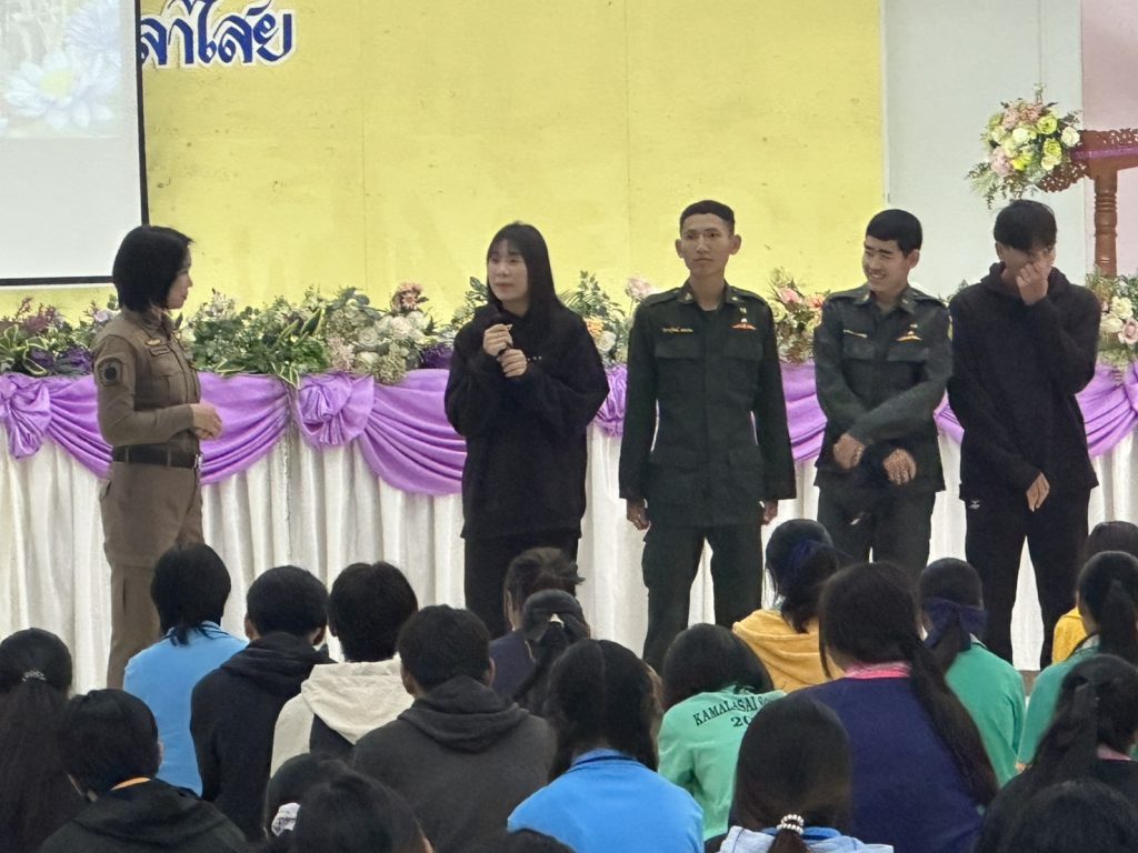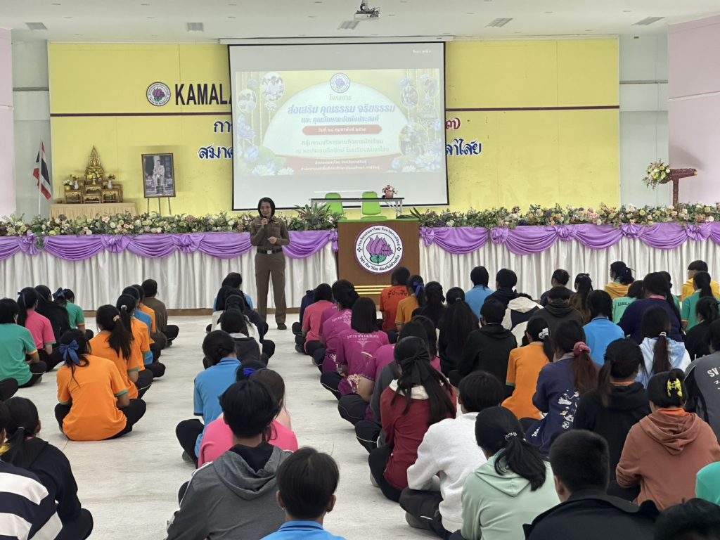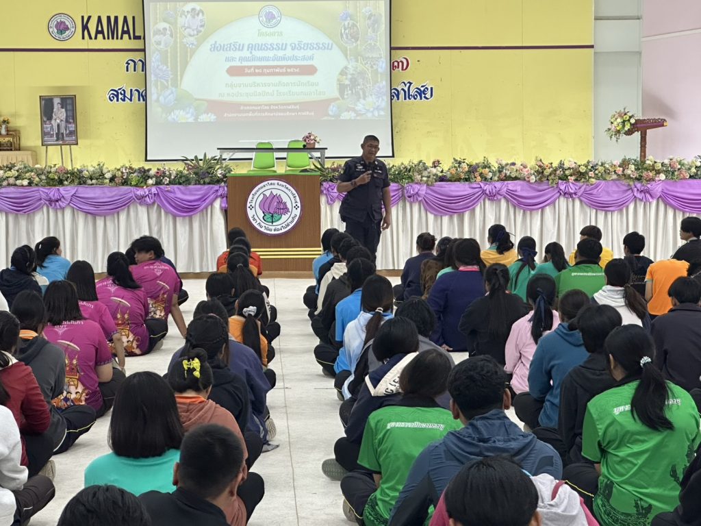 วิทยากรอบรม การปรับเปลี่ยนพฤติกรรมนักเรียน 28 กุมภาพันธ์ 2568 โดย admin / การปฏิบัติหน้าที่ของตำรวจ,การปฏิบัติหน้าที่ของตำรวจ,งานป้องกันปราบปราม,งานชุมชนสัมพันธ์,การปฏิบัติหน้าที่ของตำรวจ,งานป้องกันปราบปราม วันที่ 28 กุมภาพันธ์ 2568 เวลา 09.00 น. พ.ต.อ.ธีรวุฒิ วงศาอ้วน ผกก.สภ.กมลาไสยมอบหมายให้ พ.ต.ต.หญิง อรพรรณ ศรีนวลอ่อน สวป.(ชส.)ฯ และ ด.ต.คมกฤช ภูนาสอน ผบ.หมู่(ป.)ฯ เป็นวิทยากรอบรม“โครงการป้องกันและแก้ไขและพัฒนาคุณธรรมจริยธรรมนักเรียนปรับเปลี่ยนพฤติกรรม” เรื่องความรู้ โทษภัย ของสิ่งเสพติด ณ หอประชุมนิลปัทม์ โรงเรียนกมลาไสย FacebookFacebookXXLINELine