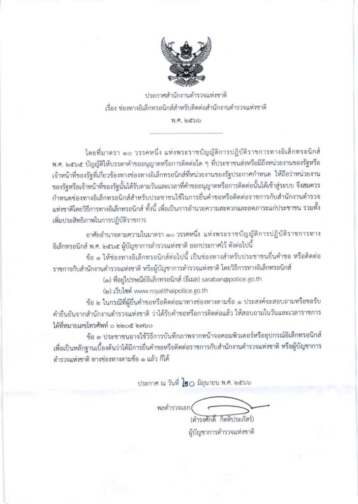 สภ.กมลาไสย ขอประชาสัมพันธ์ 14 กรกฎาคม 2566 โดย admin / ประชาสัมพันธ์กิจกรรมของหน่วย,ข่าวฝากประชาสัมพันธ์,ประชาสัมพันธ์กิจกรรมของหน่วย สภ.กมลาไสย ขอประชาสัมพันธ์ ประกาศสำนักงานตำรวจแห่งชาติ เรื่อง ช่องทางอิเล็กทรอนิกส์สำหรับติดต่อสำนักงานตำรวจแห่งชาติ พ.ศ.2566 เพื่อเป็นช่องทางสำหรับประชาชนยื่นคำขอหรือติดต่อราชการกับสำนักงานตำรวจแห่งชาติหรือผู้บัญชาการตำรวจแห่งชาติโดยวิธีอิเล็กทรอนิกส์ FacebookFacebookXXLINELine