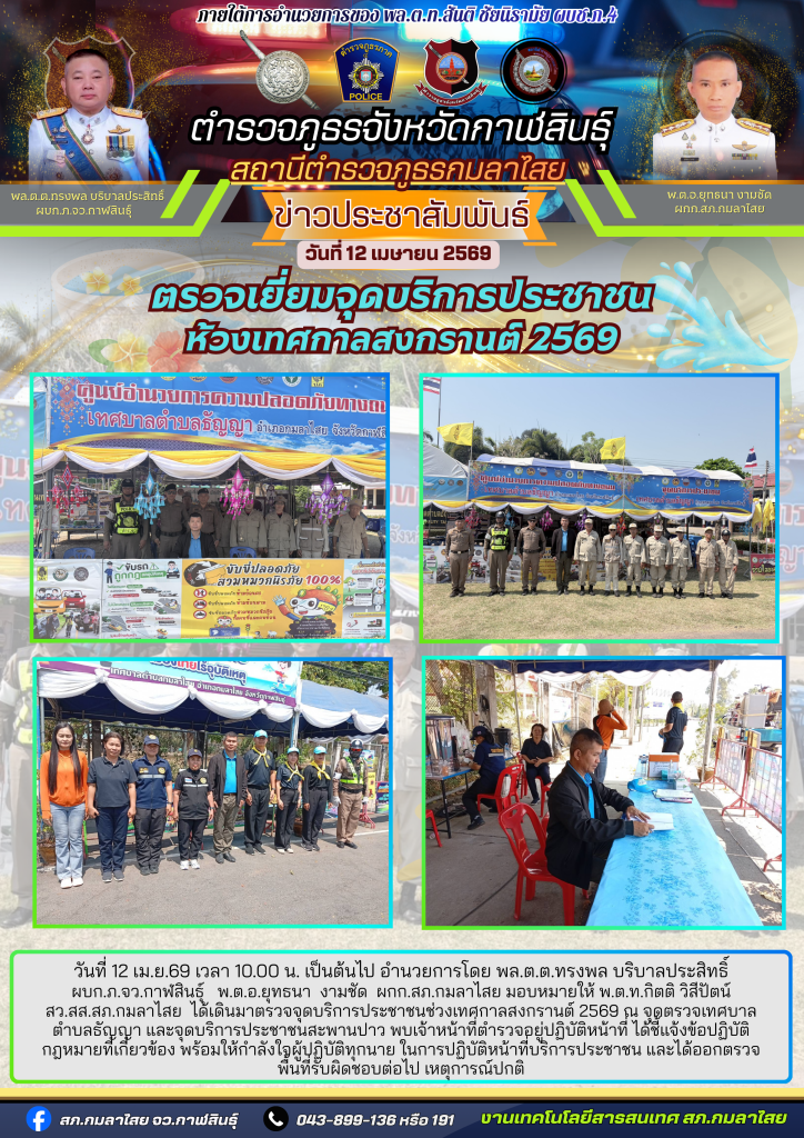 สารวัตรสืบสวนฯ ตรวจจุดบริการฯ สงกรานต์ 2569 12 เมษายน 2569 โดย kasai policeman / ประชาสัมพันธ์กิจกรรมของหน่วย,ข่าวฝากประชาสัมพันธ์,การปฏิบัติหน้าที่ของตำรวจ,งานสืบสวน,การปฏิบัติหน้าที่ของตำรวจ,งานสืบสวน,เดือนเมษายน 2569 FacebookFacebookXXLINELine