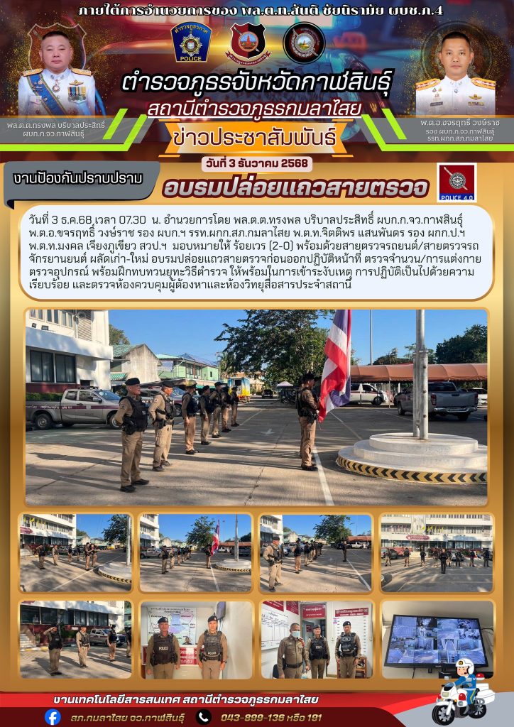 อบรมปล่อยแถวสายตรวจ 3 ธันวาคม 2568 โดย kasai policeman / การปฏิบัติหน้าที่ของตำรวจ,การปฏิบัติหน้าที่ของตำรวจ,งานป้องกันปราบปราม FacebookFacebookXXLINELine