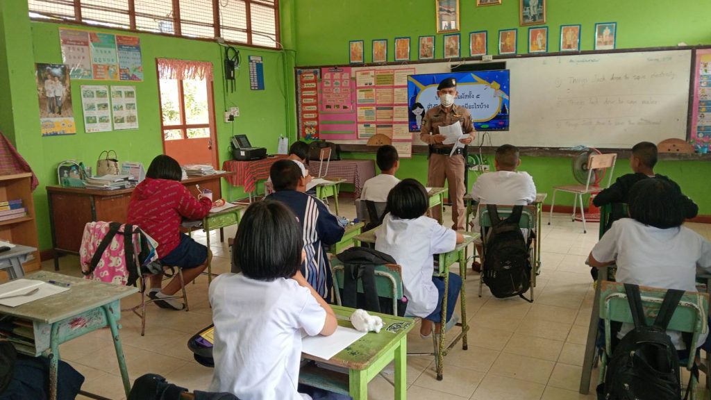 อบรมให้ความรู้แก่เด็กนักเรียน 25 กุมภาพันธ์ 2568 โดย admin / การปฏิบัติหน้าที่ของตำรวจ,การปฏิบัติหน้าที่ของตำรวจ,งานป้องกันปราบปราม เมื่อวันที่ 25 กุมภาพันธุ์ 2568 เวลา 11.00 น. พ.ต.อ.ธีรวุฒิ วงศาอ้วน ผกก.สภ.กมลาไสย พ.ต.ท.นครินทร์ ศรีอัครวิเนต รอง ผกก.ป.ฯ พ.ต.ท.มงคล เจียงภูเขียว สวป.ฯ มอบหมายให้ ร.ต.อ.เทอดชัย ดอนไพร รอง สวป.ฯ ครูตำรวจแดร์ สภ.กมลาไสย ออกประชาสัมพันธ์ มาตรการเร่งด่วน แก้วิกฤติ ฝุ่น PM 2.5 ให้กับนักเรียนเยาวชน ไม่ให้เผาป่า พืชไร่ และพื้นที่เพาะปลูกเพื่อการเกษตร , เผาในที่โล่ง และกิจการที่เป็นอันตรายต่อสุขภาพ ในพื้นที่ สถานที่ ร.ร.ดอนยูงราษฎร์ประดิษฐ์วิทยา ต.กมลาไสย อ.กมลาไสย จ.กาฬสินธุ์ FacebookFacebookXXLINELine