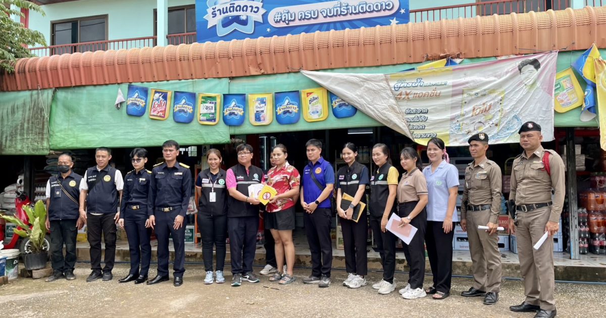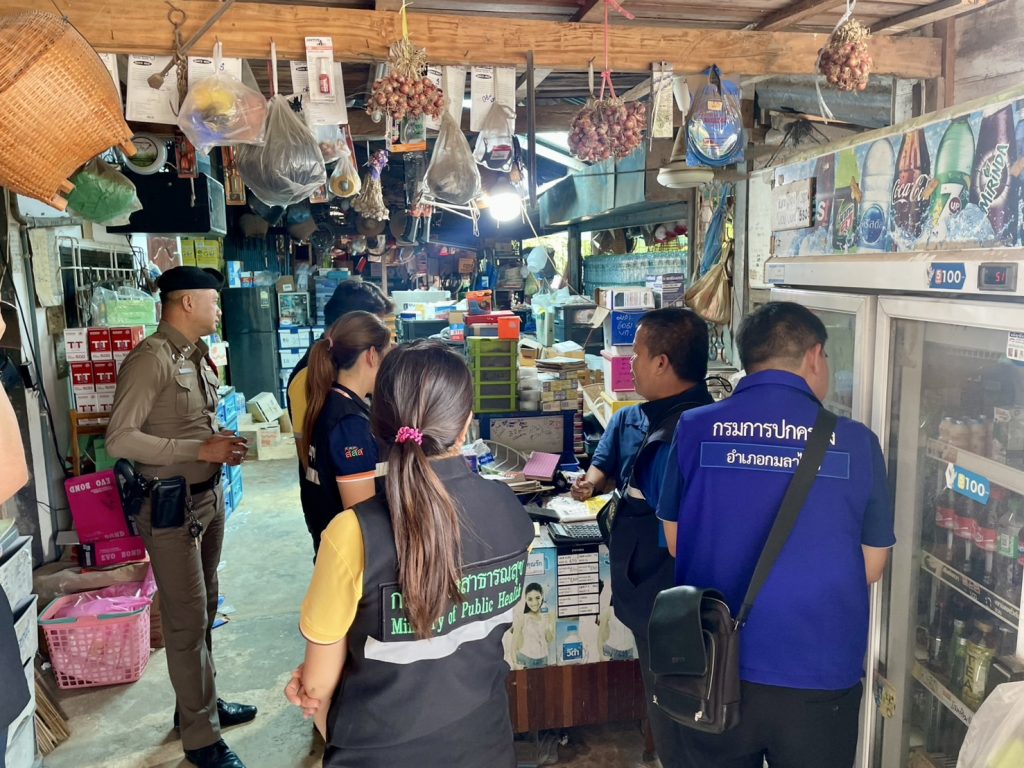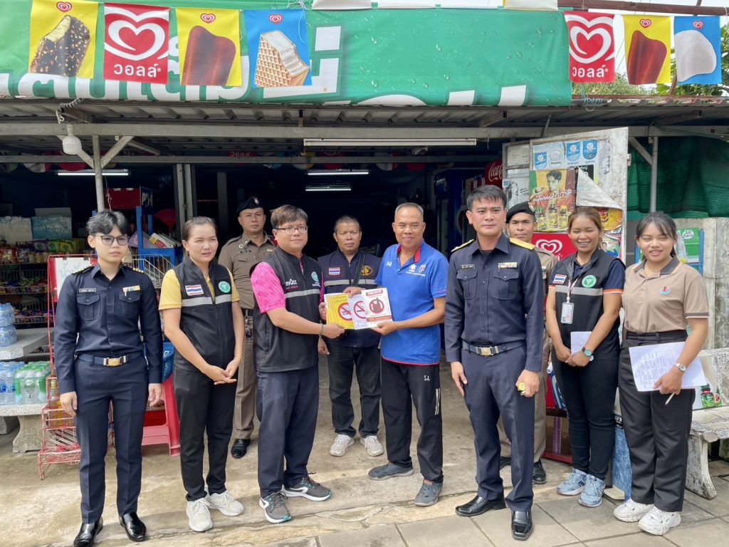 ร่วมกับเจ้าหน้าที่จากสำนักงานป้องกันควบคุมโรคที่ 7 จ.ขอนแก่น , เจ้าหน้าที่สรรพสามิต จ.กาฬสินธุ์ , เจ้าหน้าที่สาธารณะสุขอำเภอ และเจ้าหน้าที่ฝ่ายปกครอง ในการตรวจเตือนประชาสัมพันธ์ ครั้งนี้